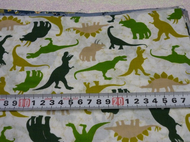 100*50★生成り・恐竜柄の・ハギレ・生地・布★0544-14