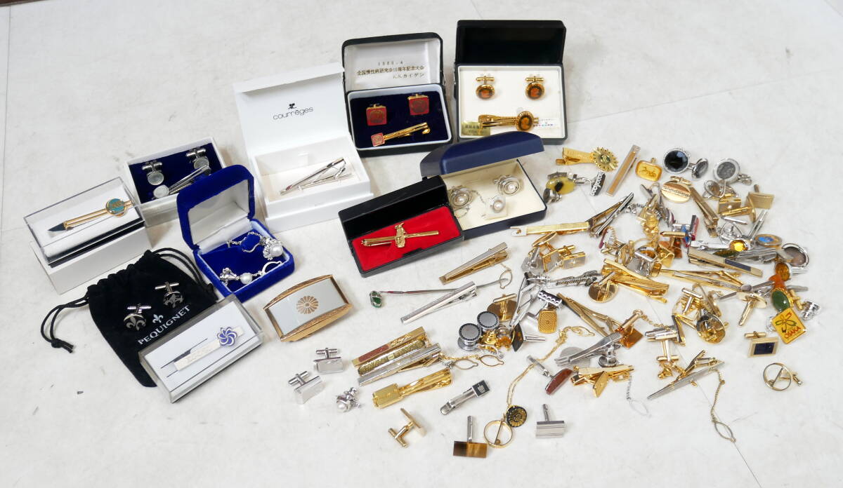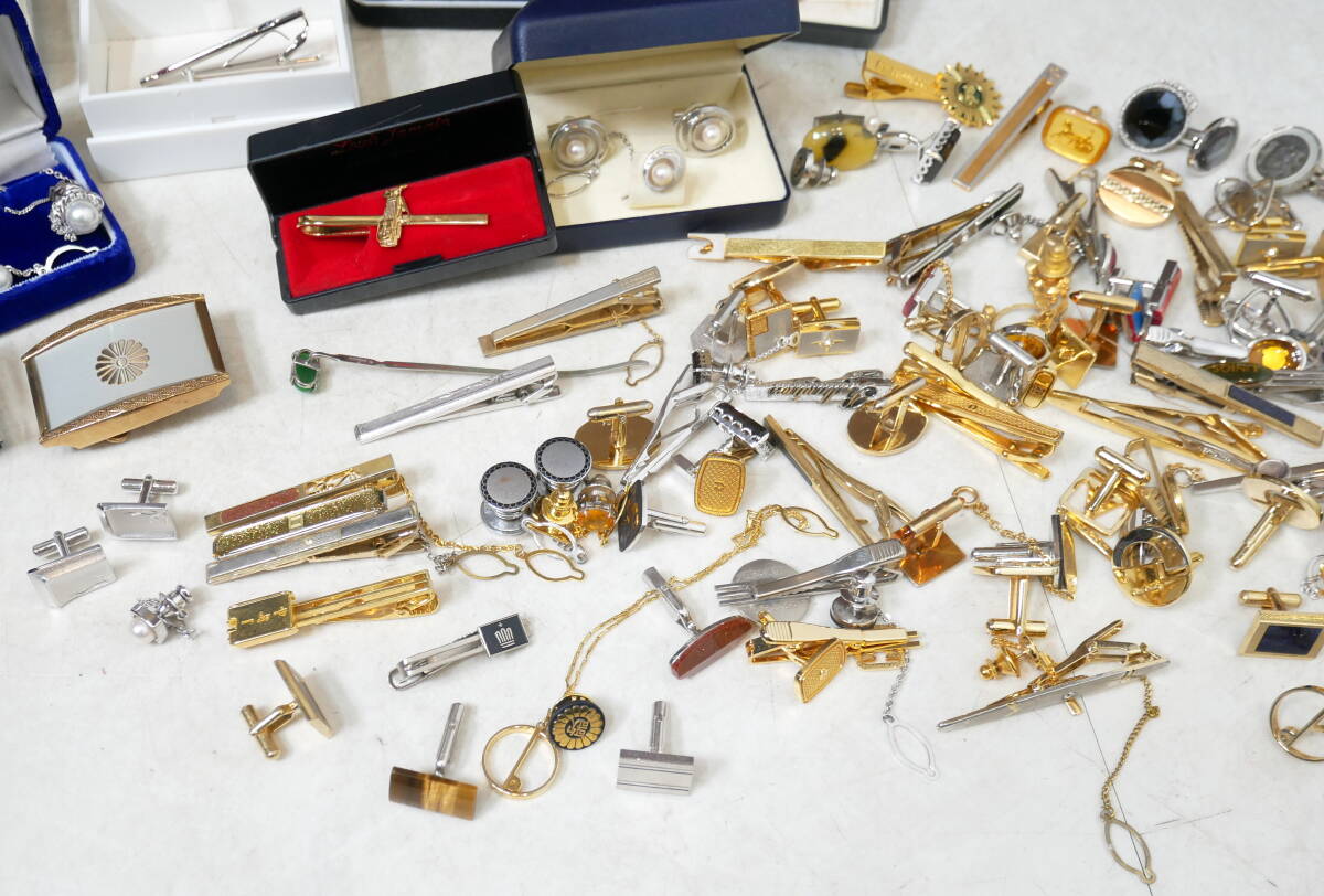 ▲(R709-H193) 1円~ アクセサリー 大量まとめ 約1076g タイピン カフス ネクタイピン シルバーカラー ゴールドカラー イミテーション | ||