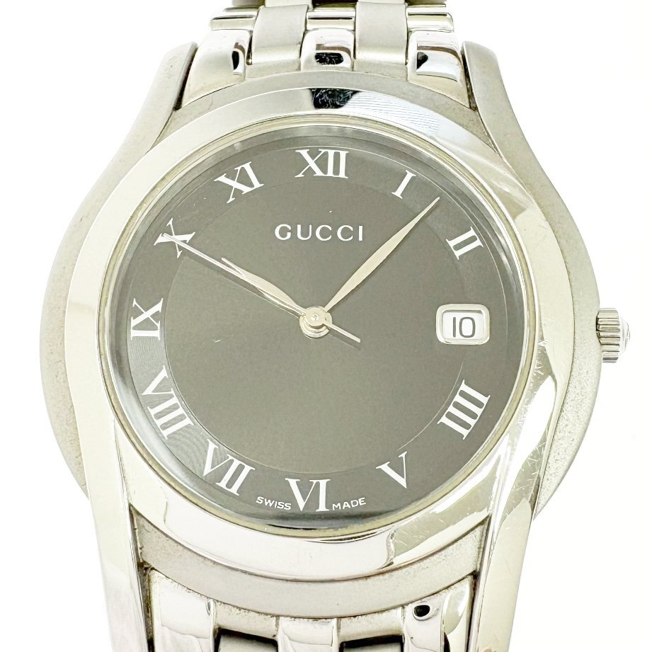 【1円スタート】GUCCI グッチ 5500M SS ブラック文字盤 クオーツ メンズ腕時計 488720