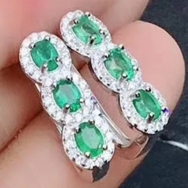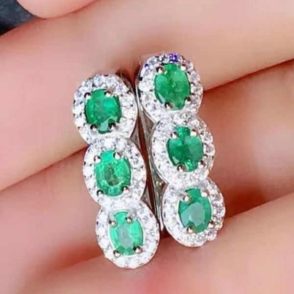 天然エメラルドスタッドピアス、3*4mm、925スターリングシルバー、圧倒的な安さ、鑑別書別売り