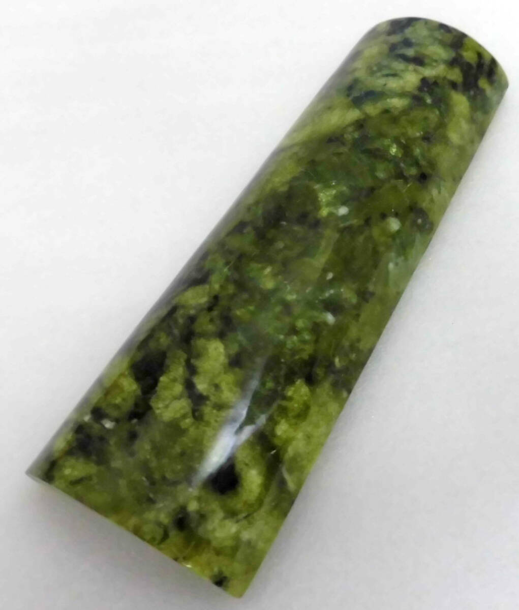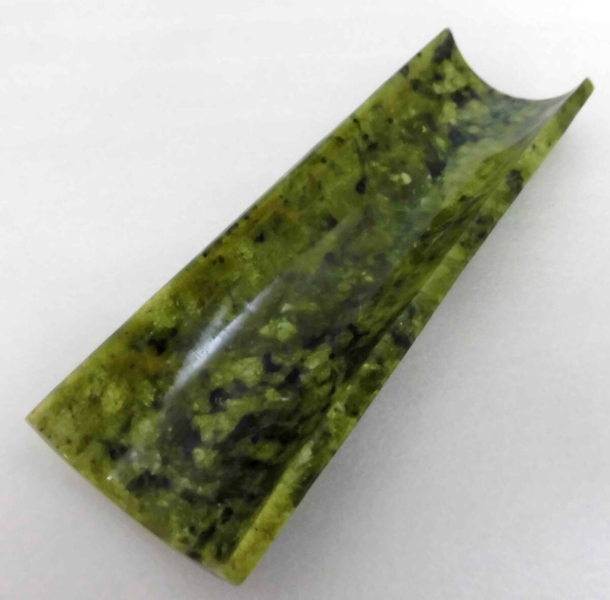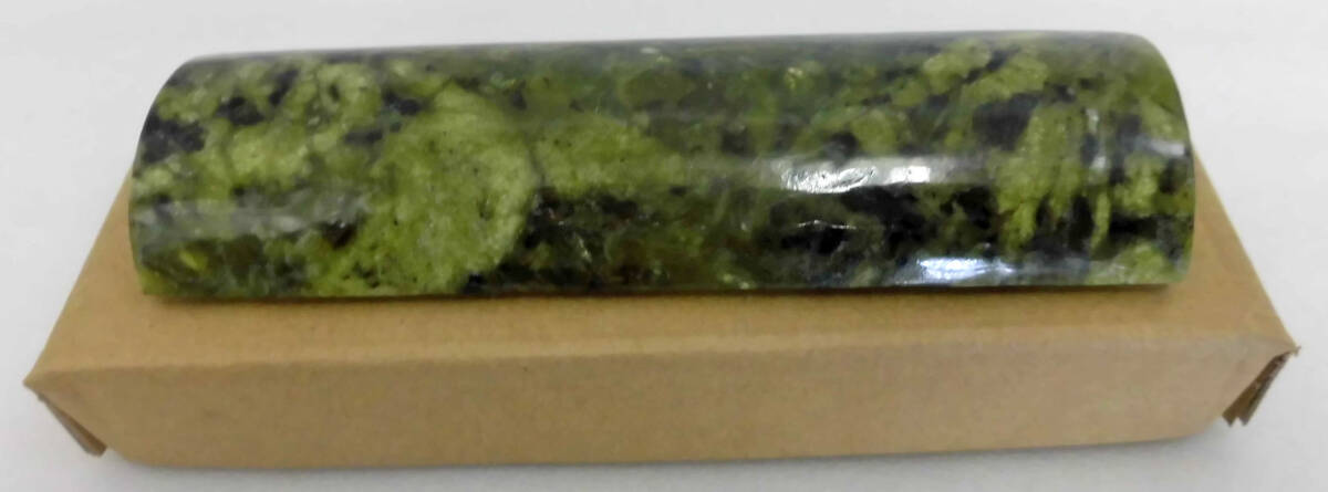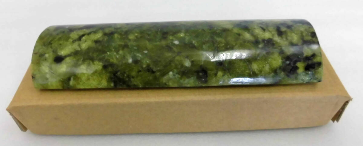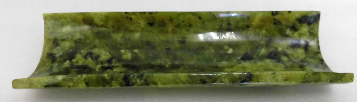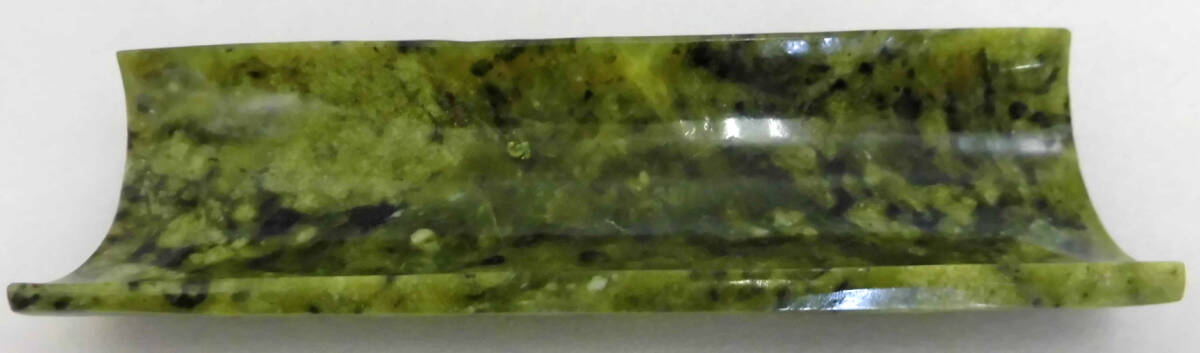 | 品名:碧玉 仙媒 茶合 碗枕 煎茶道具 文房四宝 作家:林 白祥 寸法:≒14.5㎝x4.9㎝ 丈≒1.8㎝ ≒115gup 状態:光に当てると半透明のきれいな結晶が全体にある碧玉です。 写真の通り、緑に濃緑と白い結晶が多く点在します。 ヒビワレカケなどダメージのない一品です。 できるだけ説明いたしますが、写真でご判断ください。写真の色の誤差はご容赦ください 出品者の主観:半透明のきれいな上質碧玉です。世界で一つの色柄をお楽しみください。 | ||