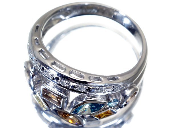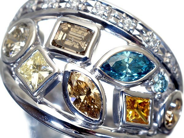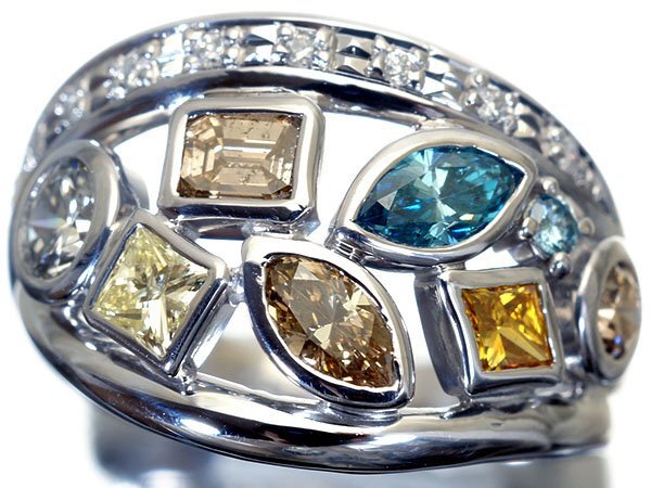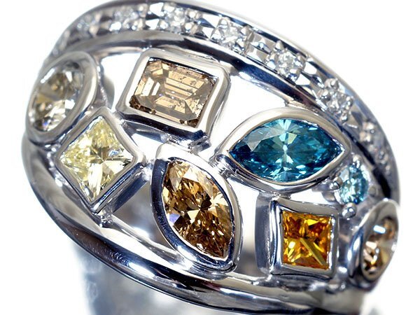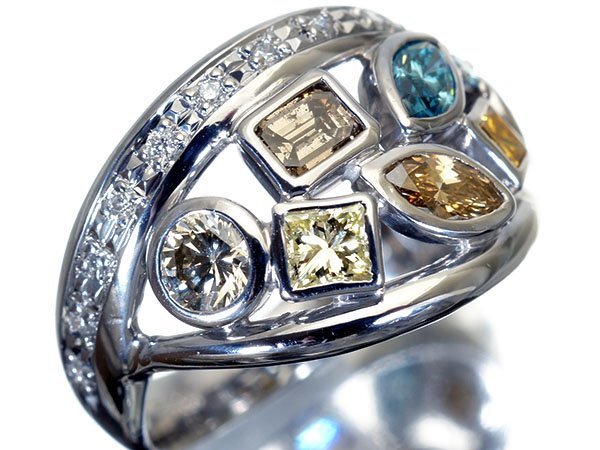 カラフルで豪華な輝き放つ超希少な極上ファンシーカラーダイヤモンド総計1.50ctを素敵に宝飾した、高級Pt900リングを1円から特別大放出致します!