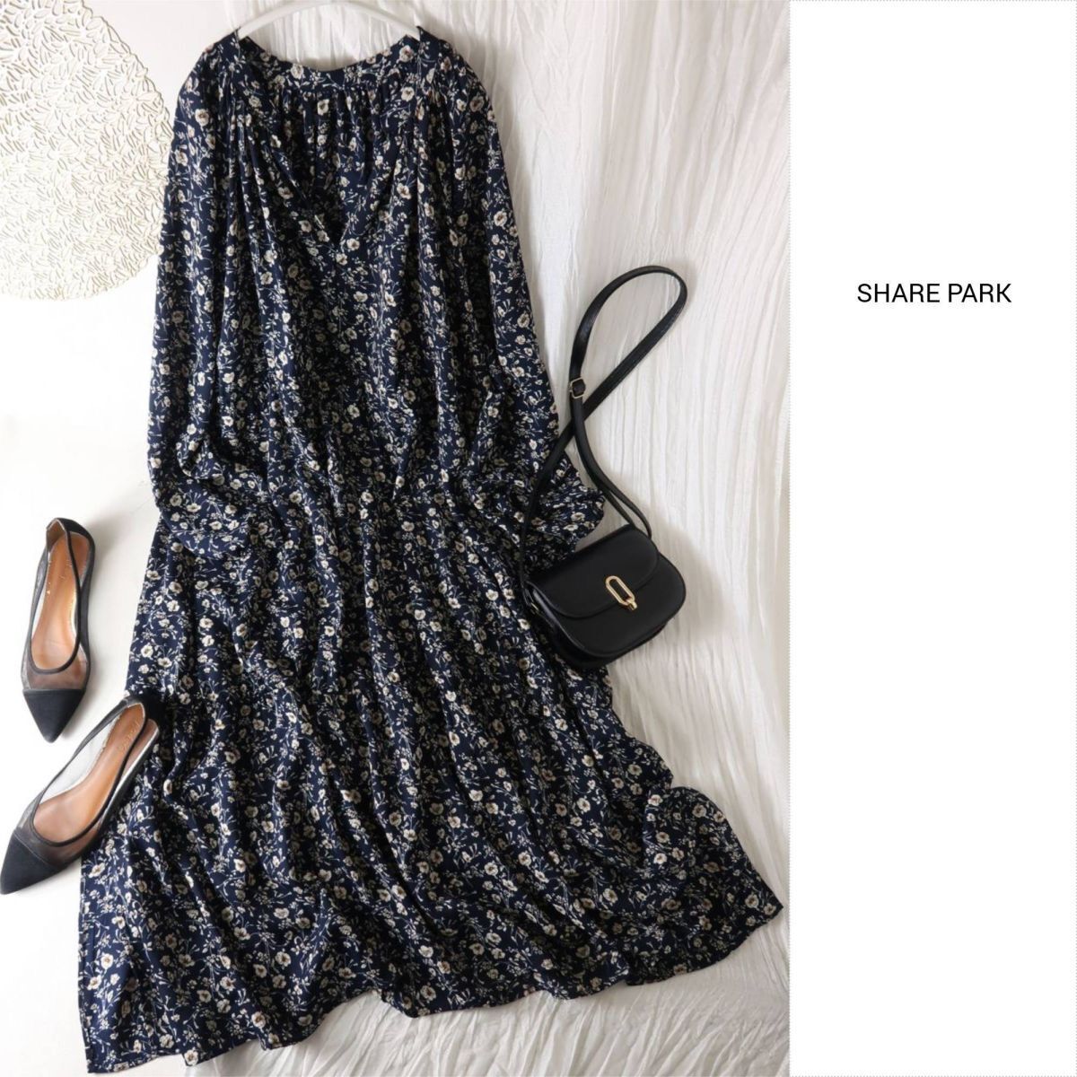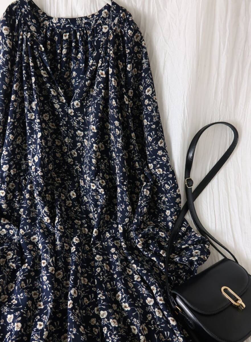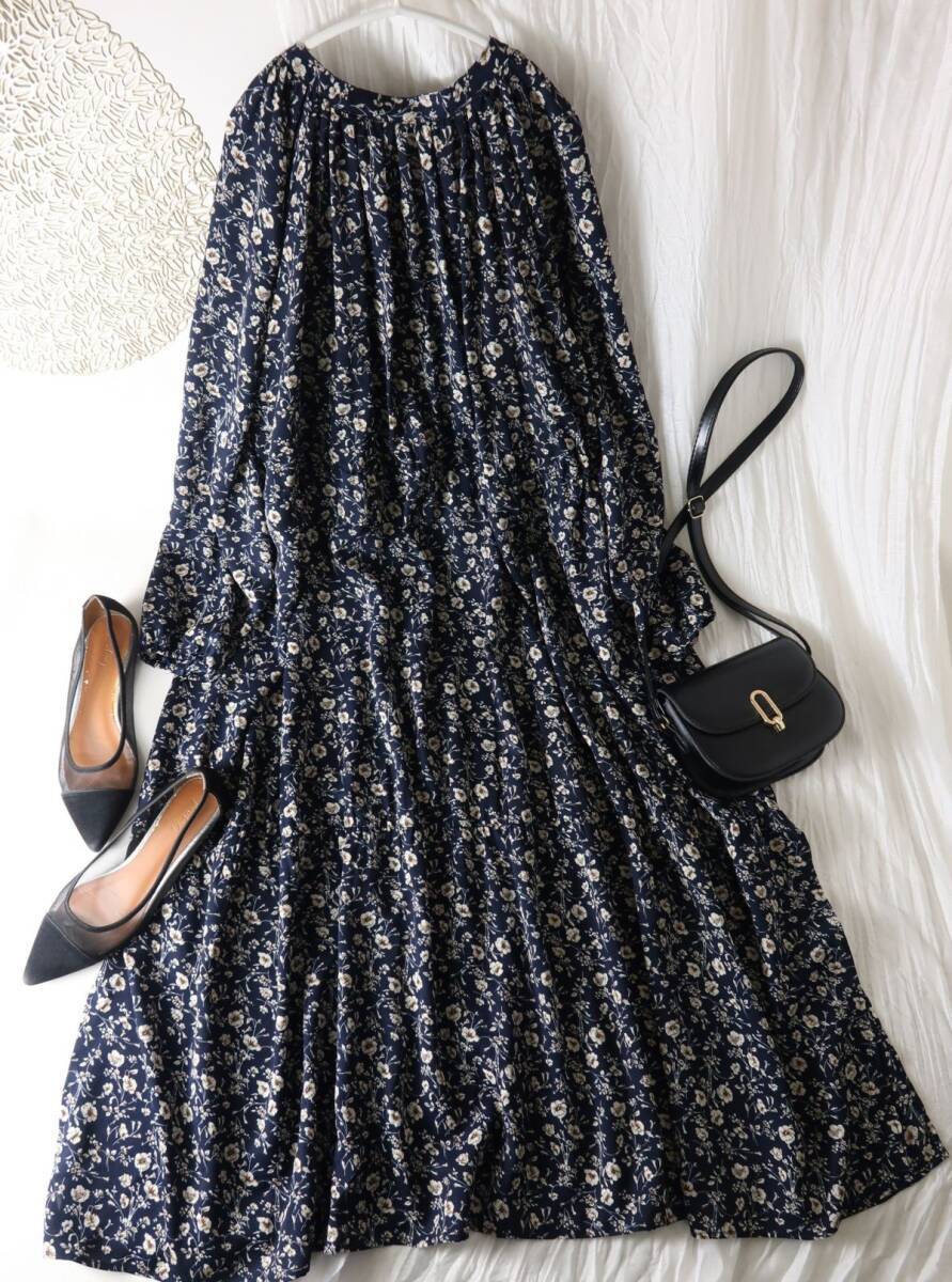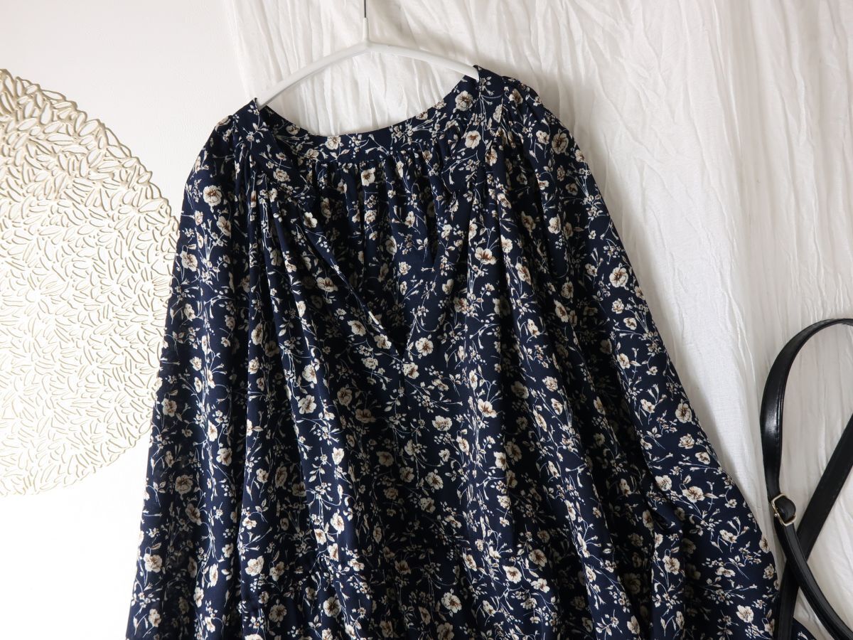 シェアパーク SHARE PARK☆洗える フラワープリント ギャザーロングワンピース 1サイズ☆E-M 5203