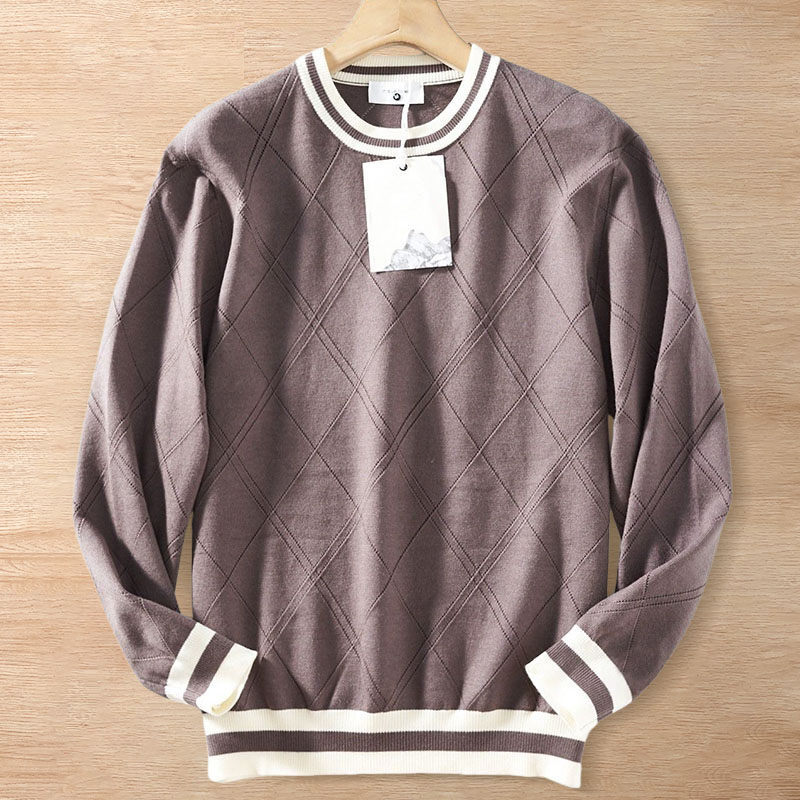 Y6514-XL 紫灰 新品DCKMANY セーター ニット ジャカード ウール混 バイカラーデザイン ふんわり 暖かい 防寒 秋冬 通勤 メンズ トップス