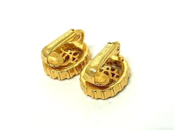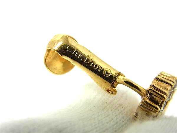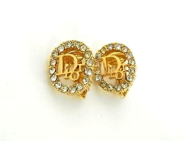 1円 ■美品■ ChristianDior クリスチャンディオール ヴィンテージ ラインストーン クリップ式 イヤリング ゴールド系 FP6172