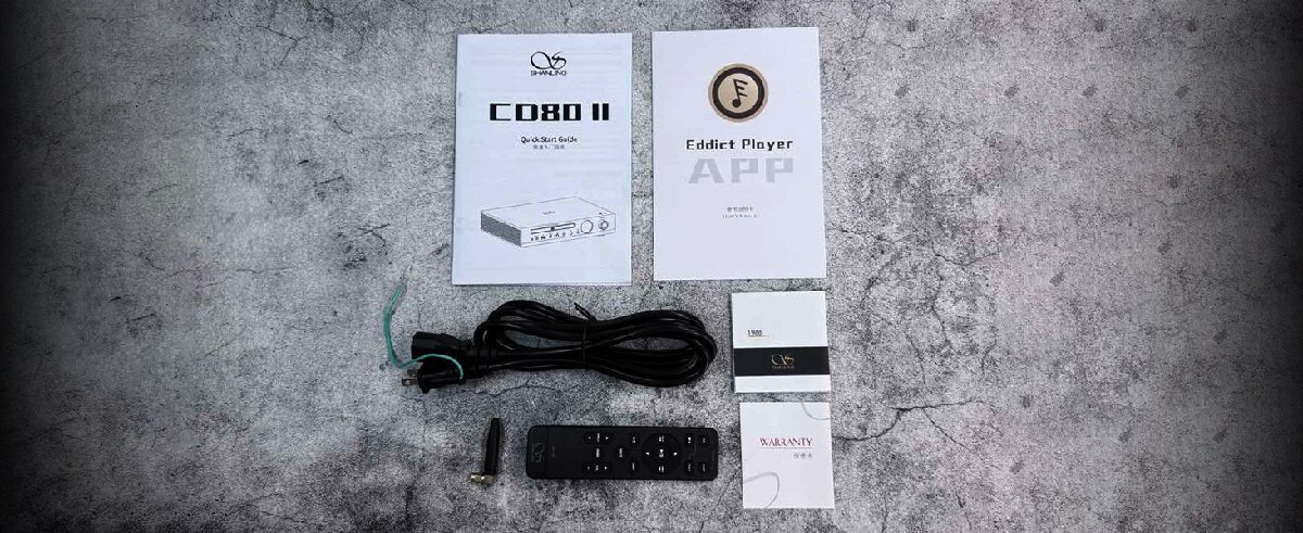 コンパクトデスクトップCDプレーヤーCD80II 『コンパクト×クラシック』構成新たなデザインのCDプレーヤー 「CD80II」は、「CS43198」と、「デュアルSGM8262-2」を採用した、新たなデスクトップCDプレーヤーです。 軽量かつ強靭なフレームは、SHANLINGが細部にこだわり抜いた金属筐体デザインを採用しています。 コンパクトなサイズ感による設置のしやすやと、デスク環境を彩るシャープなデザインの両立を叶え、様々なオーディオ環境へのマッチングを可能にしました。 1.28インチ高精細カラー画面シンプルなUIで快適な操作性を実現 CD80IIのフロント部分には、1.28インチの円形ディスプレイが搭載されており、再生中の楽曲の表示や、ボリュームダイヤルを利用した各種設定変更などの操作を行う事が可能です。 シンプルなUIは、ユーザーが快適に操作できることを目指した設計となっており、入出力系統の切り替えや設定の変更まで、快適にアシストします。 伝統的なトレイ式CDドライブを採用安定性と耐久性を追求した設計 CD80IIは、CDを挿入するコンパートメント部分に、伝統的なトレイ式のドライブ設計を採用しています。 これによりユーザーが愛用しているCDのスムーズな取り込みと、安全な駆動を可能にしました。 さらにトレイ式のドライブは、再生時の動作安定性を高め、長時間に渡り安定した環境でCDをお楽しみ頂けます。 CDの信号を安定かつ確実にクラシックなシステム構成を CD80IIは、他のSHANLING製品に採用されている第4世代のサーボシステムと、安定性と高精度を併せ持つHD850ピックアップレンズを、組み合わせたシステムを採用しています。 これによりCDの読み取りを安定かつ確実にし、信号損失を排除します。 1秒ごとのシームレスなCD再生が、より快適なオーディオライフをもたらします。 Cirrus Logic『CS43198』搭載繊細なサウンドと、強力なデコード CD80IIには、Cirrus Logic社のフラッグシップDACチップ「CS43198」を採用しています。 この優れたデコード性能と繊細なディティールを表現を持つDACチップに、SHANLINGの37年に渡るチューニング技術を組み合わせることで、卓越した高解像度を実現し、リスナーに活気に満ちたサウンド表現をお届けします。 デュアルSGM8262-2搭載最大出力850mW@32Ωを実現 CD80IIは、アンプチップ「SGM8262-2」をデュアル搭載しています。 これにより、高い出力電流と強力なダイナミックレンジを実現し、最大出力850mW@32Ωという出力を有しています。 高インピーダンスのヘッドフォン等の駆動をも可能にし、幅広いオーディオ製品で快適にご利用頂けます。 Panasonic「フィルターコンデンサー」クリアなレイヤー表現と、豊かなディティール CD80IIは、Panasonic社のフィルターコンデンサーを採用しています。 このコンデンサーによるチューニングで、クリアなレイヤー表現と、豊かなディティールを持つサウンドパフォーマンスを実現しました。 複数の入出力系統に対応マルチシーンで活躍できるプレーヤー CD80IIの入力系統は、「CD再生」「USBメモリ」「Bluetooth(レシーバー機能のみ)」に対応しています。 出力系統は、フロント部分に3.5mm/4.4mmヘッドフォン端子、リア部分にRCA端子、coaxial(同軸)端子を備えており、これによりユーザーのご利用機器や環境に応じて、幅広い用途でCD80IIをご利用頂けます。 USBメモリの楽曲再生に対応ローカル音源をCD80IIで楽しむ CD80IIは、製品のフロント部分のUSB-A端子にUSBメモリを接続することで、メモリに保存されている楽曲のデータを読み込むことが可能です。 PCM384kHz、DSD256、MQA 4Xまでをサポートし、CD再生以外の環境でも製品を存分にお楽しみ頂けます。 Bluetoothレシーバー機能搭載様々なデバイスから手軽に楽曲再生 CD80IIは、Bluetoothレシーバー機能を搭載しており、高性能なBluetoothDAC/AMPとしての役割を果たします。 スマートフォンにペアリングして、ストレージの楽曲からストリーミングサービスの楽曲まで、幅広いコンテンツでCD80IIをご活用頂けます。 対応コーデック(受信):LDAC、AAC、SBC リモートコントロール対応遠隔操作で快適な音楽体験を実現 CD80IIは、付属品のリモコンによる遠隔操作が可能です。 専用APP「Eddict Player」のSyncLinkシステムにも対応しており、アプリ内からペアリングすることで、Gain変更やライブラリスキャン等の様々な操作を、スマートフォンから簡単に行う事ができます。 より手軽に、快適な環境でCD80IIをお楽しみ下さい。 Junzheng「X1000E」プロセッサー消費電力の最適化とスムーズな操作を CD80IIは、SHANLING「CR60」にも採用しているJunzhengの「X1000E」をメイン制御チップに採用しています。 この制御チップにより、システムの演算能力を大幅に向上させ、消費電力を最適化し、低遅延起動を実現しました。 さらにスムーズで滑らかな操作性により、各種操作をストレスなくご利用頂けます。 ハイレゾオーディオ認証高品質な音楽体験をCD80IIから CD80IIは、日本オーディオ協会が認定する「ハイレゾオーディオ」に加え、ワイヤレスのハイレゾ