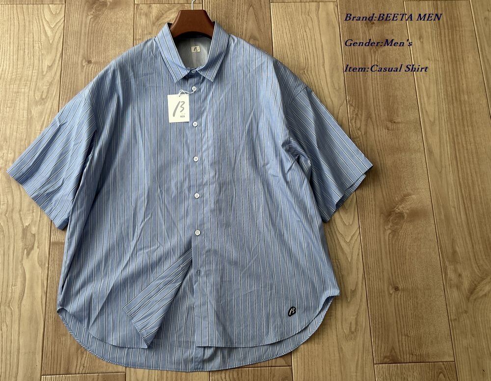 新品サンプル COMME CA BEETA MEN ベータメン 日本製 ストライプ シャツ ブルー Lサイズ 53IK07 定価33,000円