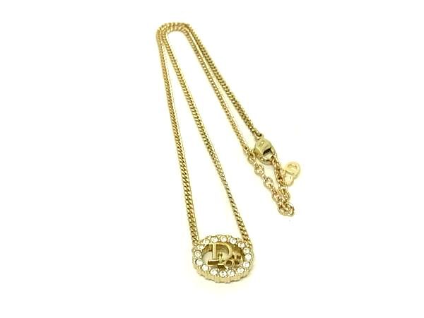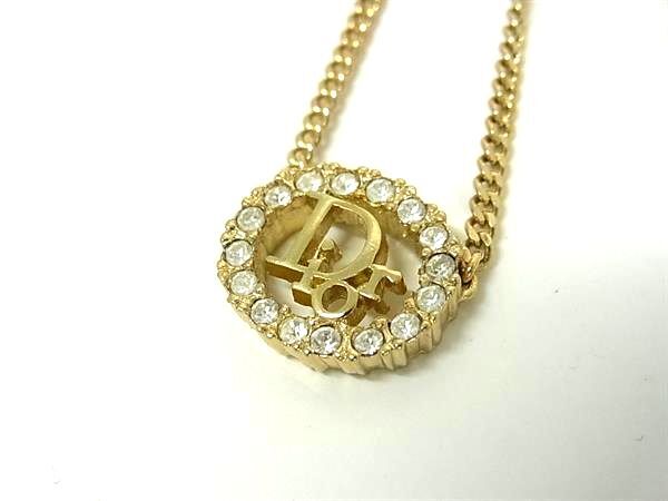 1円 ■美品■ ChristianDior ディオール ヴィンテージ ラインストーン ネックレス ペンダント アクセサリー ゴールド系 FS4992