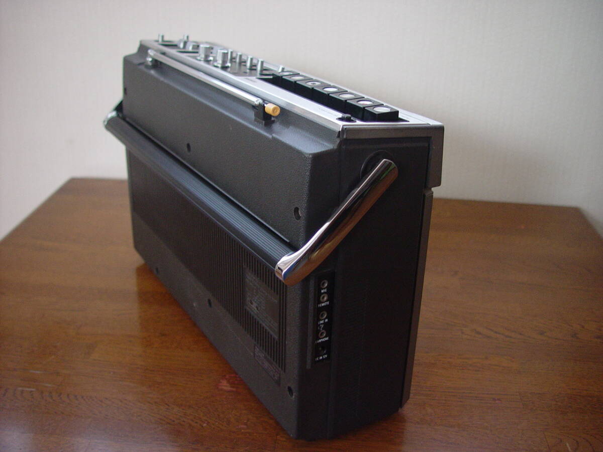 ラジカセの持ち手側板は経年劣化で金属メッキがブツブツと荒れて来ますがこのラジカセの持手側板はブツブツが無くかなり綺麗だと思います。