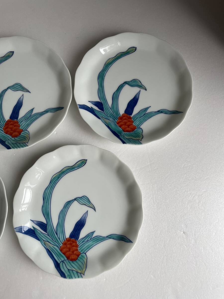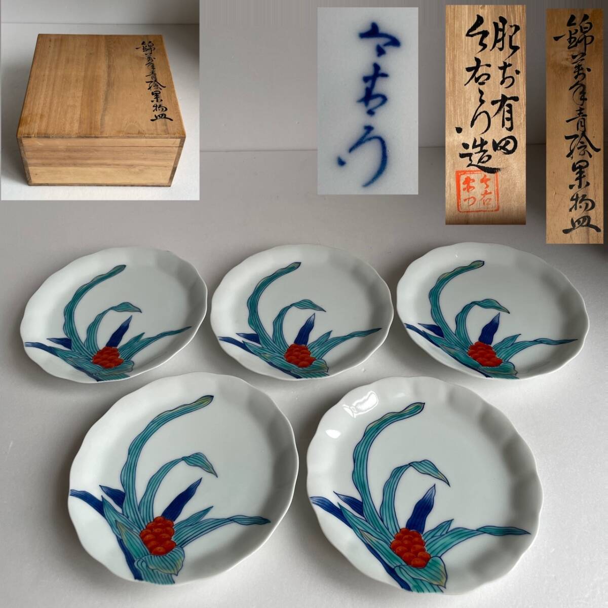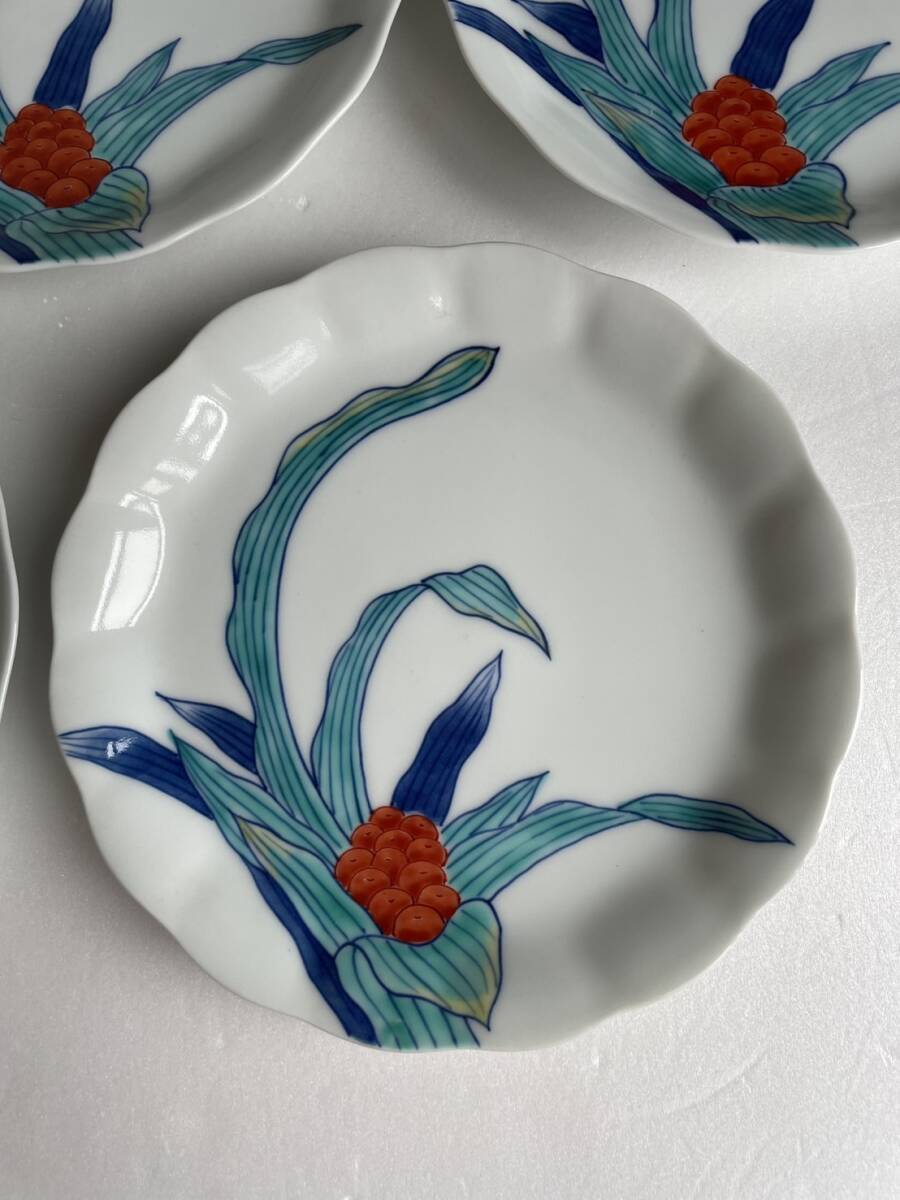 【和美】十二代 今泉今右衛門 錦萬年青絵果物皿 五客 共箱 本物保証 73