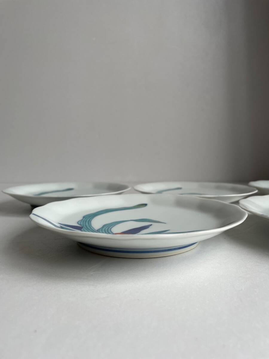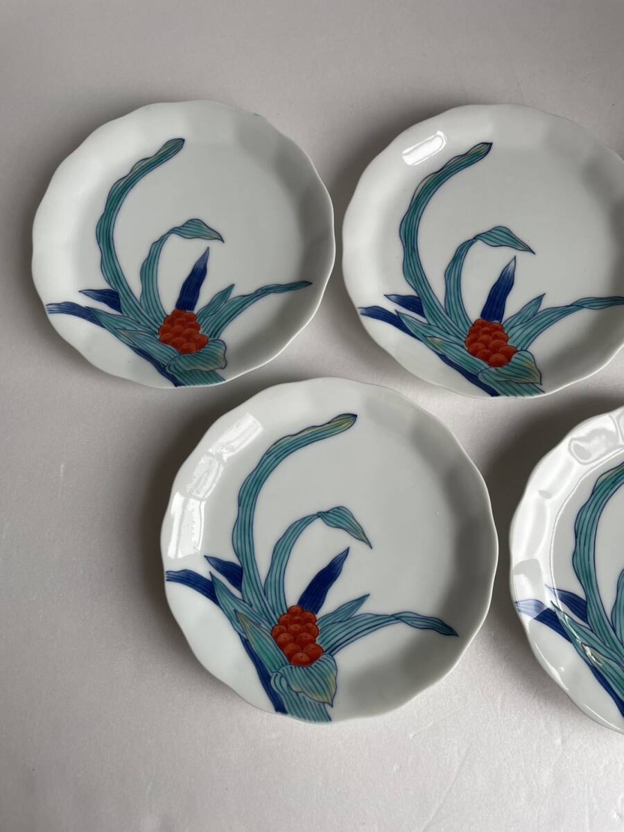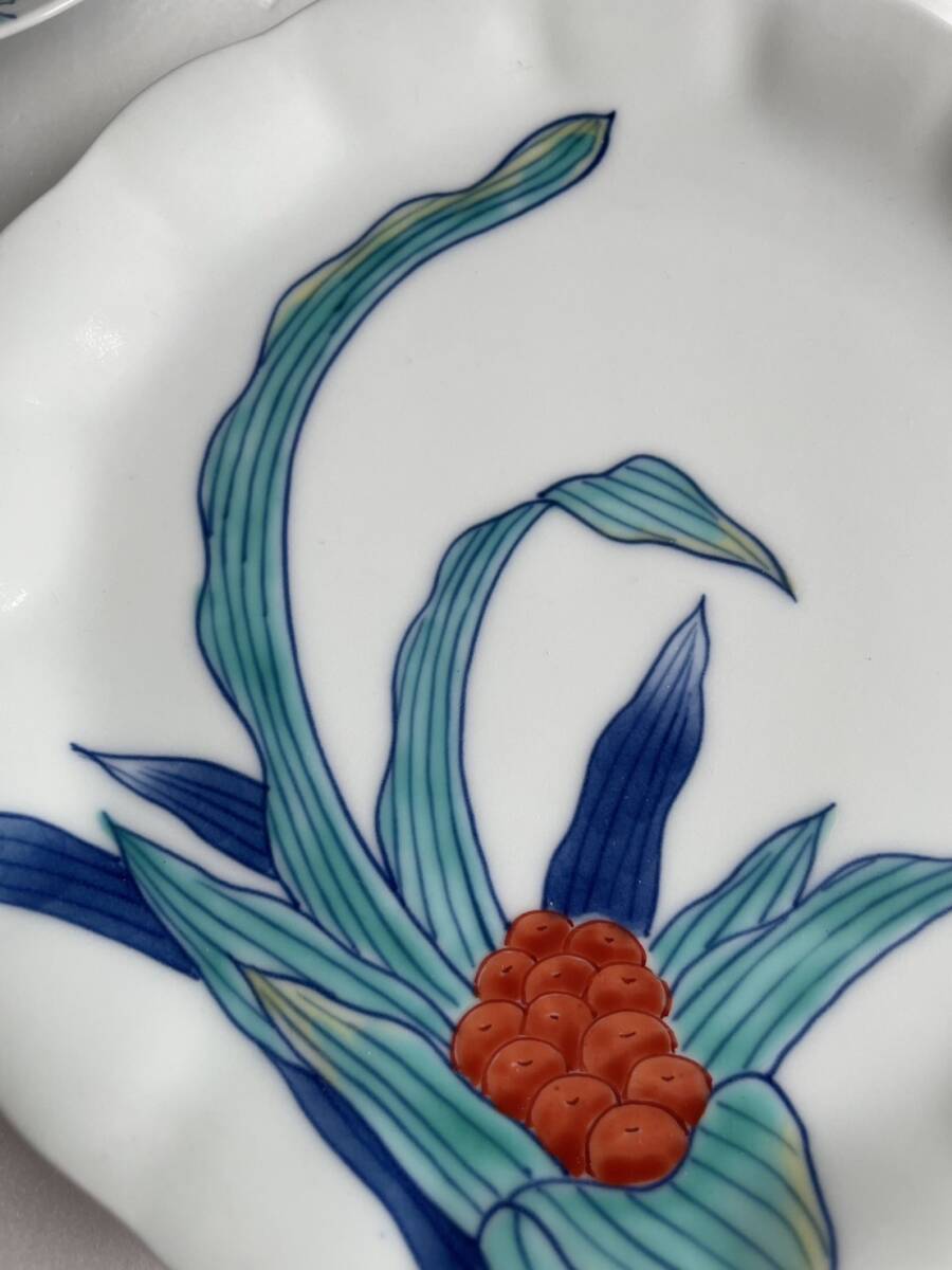 【和美】十二代 今泉今右衛門 錦萬年青絵果物皿 五客 共箱 本物保証 73