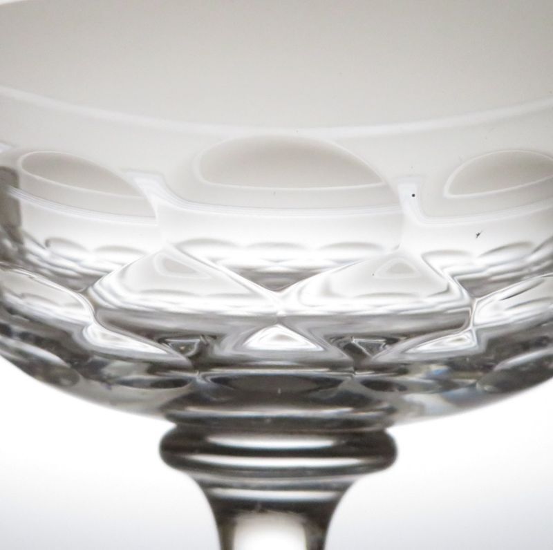 上には4本の線が、下にはうろこのようなカットがあるシャンパンクープでございます。