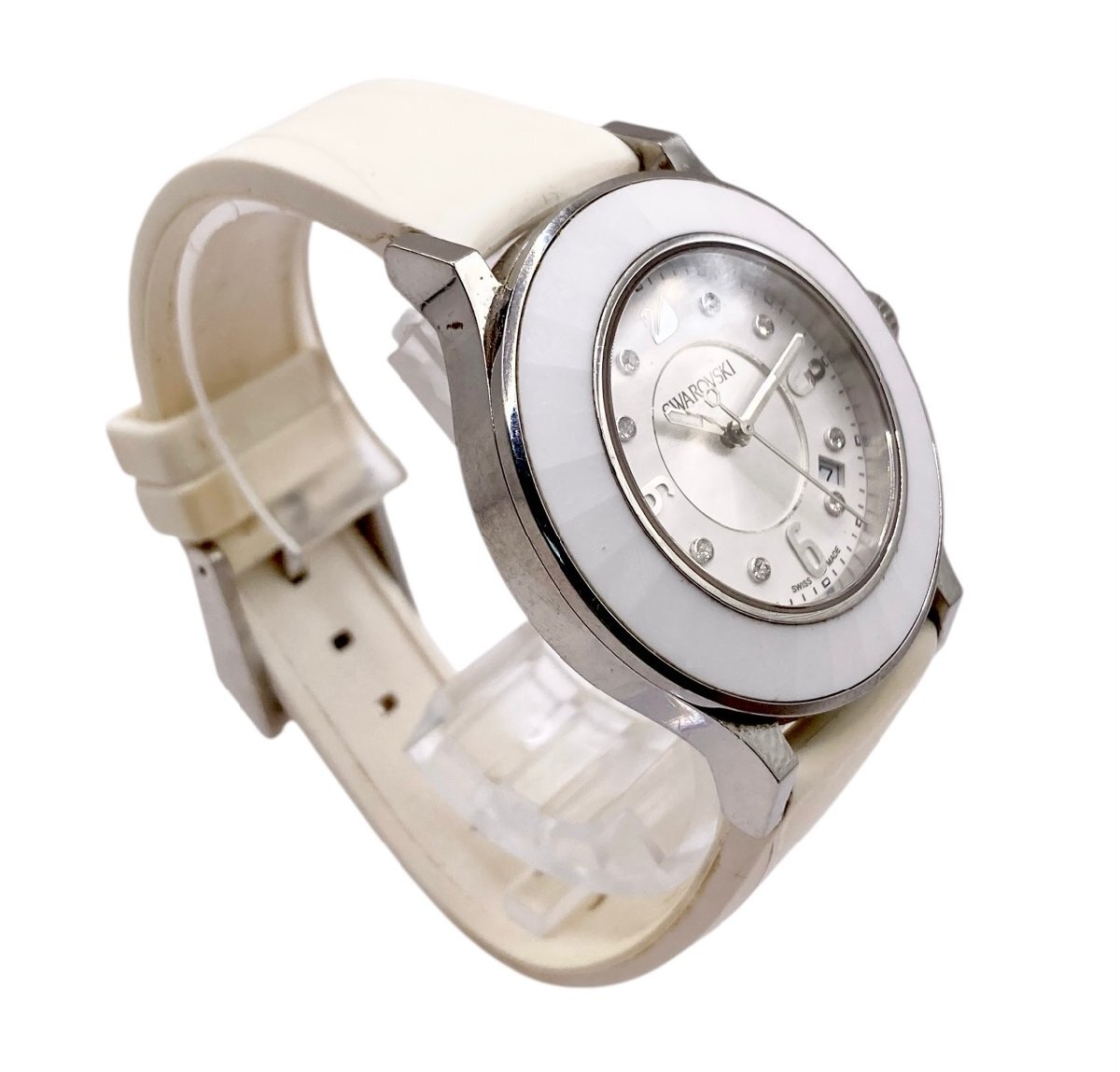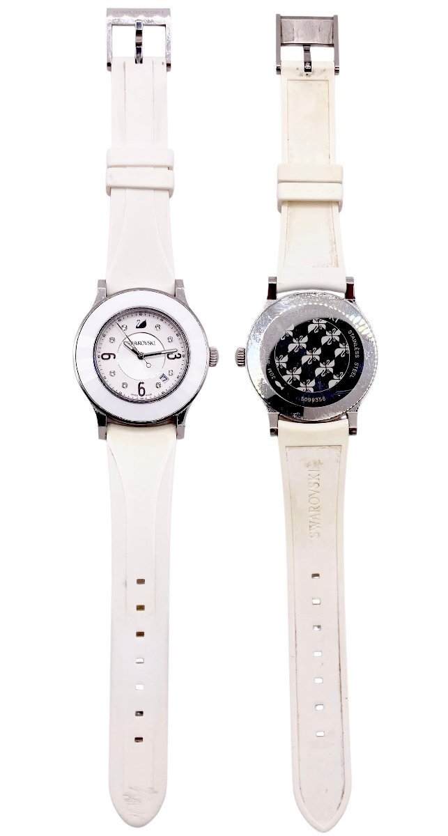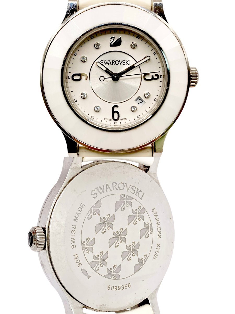 蘇や(BBY1700) 時計 腕時計 SWAROVSKI Octea Classica White Rubber Watch 5099356 白文字盤 クオーツ 稼働 中古品 コンパクトサイズ