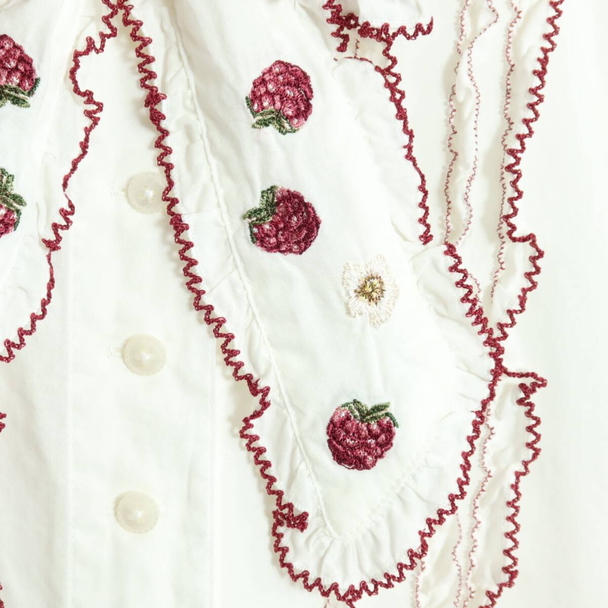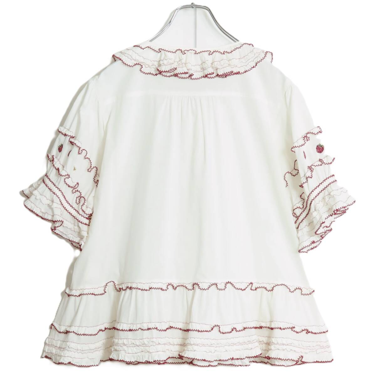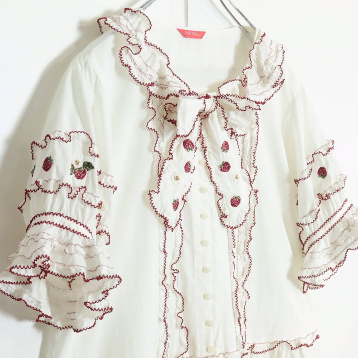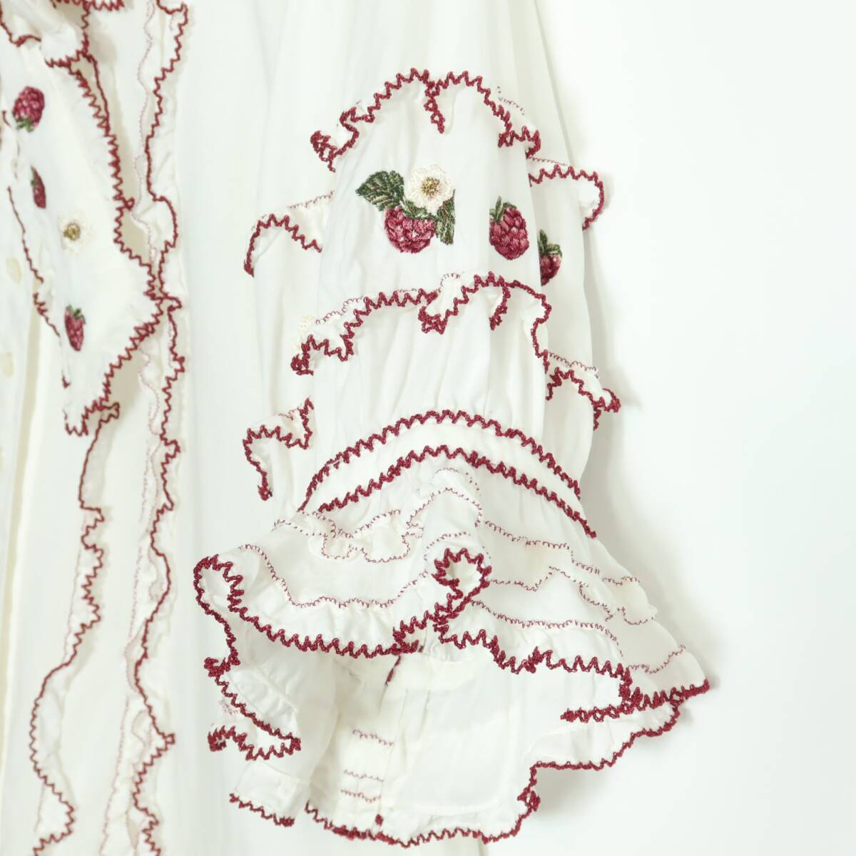 商品説明 | 【実寸約】肩幅41袖丈28バスト94着丈61(cm) 【サイズ表記】 なし。実寸をご参照くださいませ。 【素材】 綿100% 【状態】使用感少なめの美品 【デザイン】白系 2021年夏カタログ モデル着用ページ掲載のお品物です。 ラズベリーの刺繍が大人可愛い半袖ブラウスです。 ティアードデザインのふんわりフォルム♪ 赤いピコレースで縁取りされた段々フリルもキュート♪ フロントは上から下までボタンで開くデザイン。 これ一枚でもレイヤードでもロマンティックコーデに大活躍するアイテムです。 |