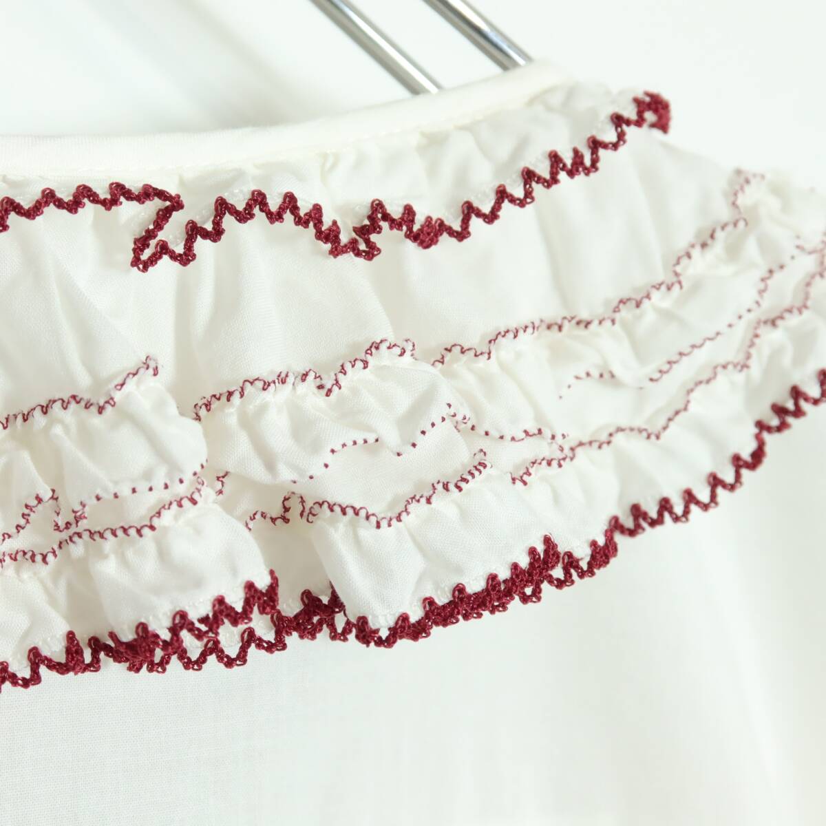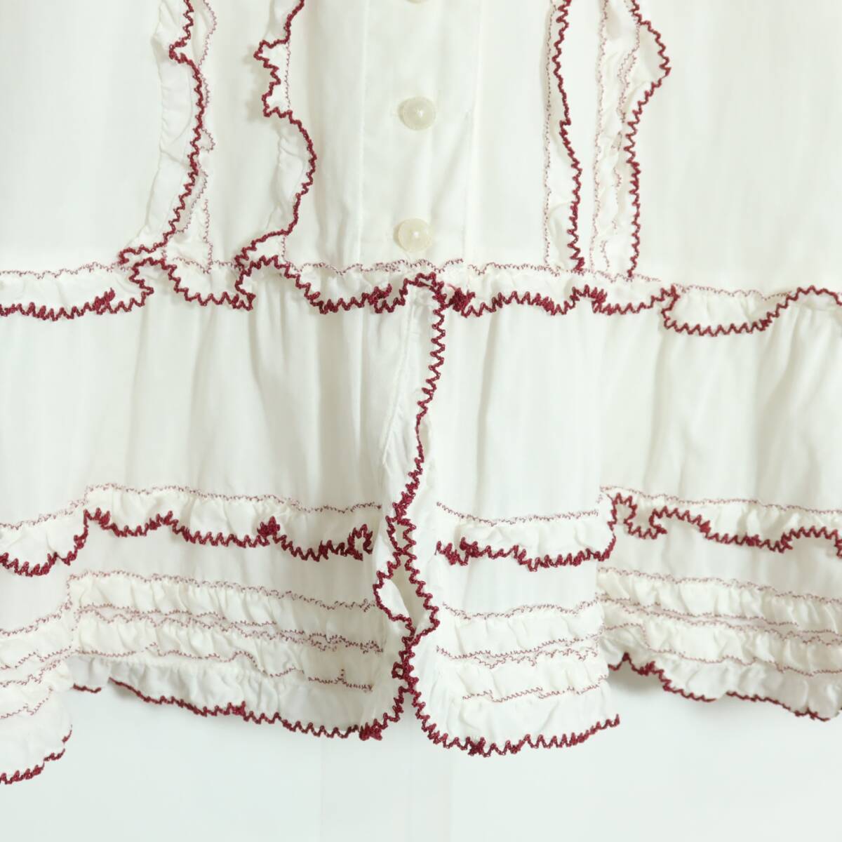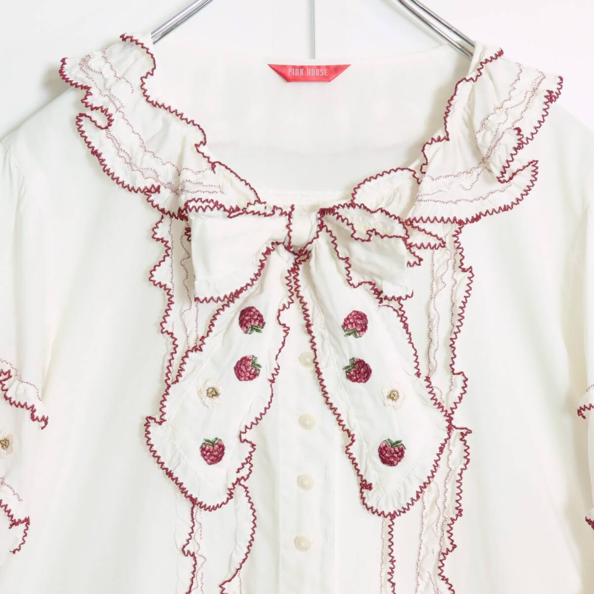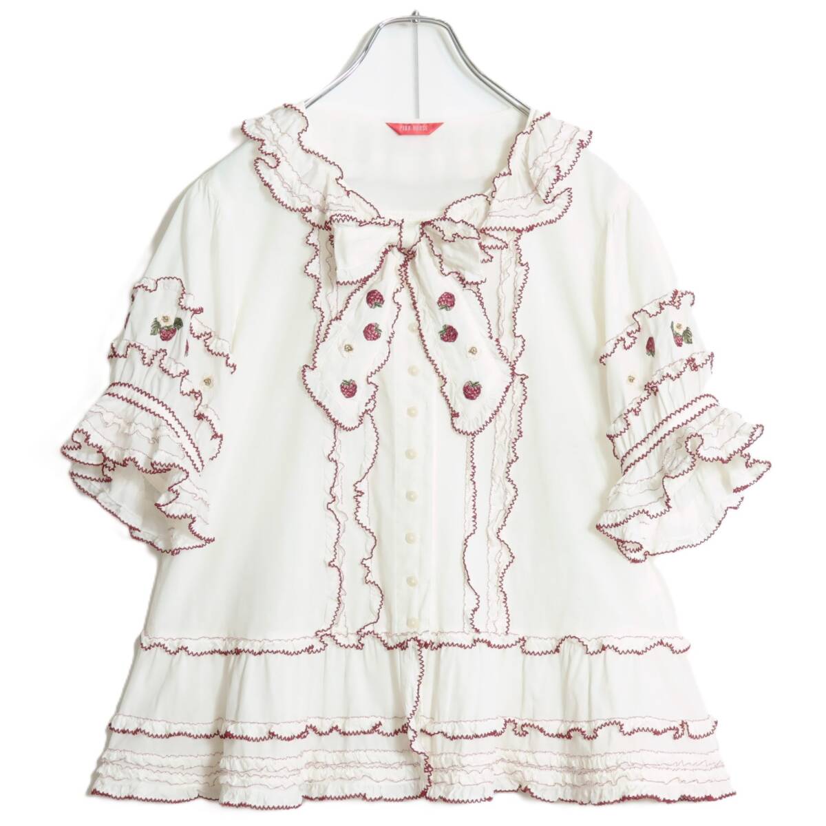 商品説明 | 【実寸約】肩幅41袖丈28バスト94着丈61(cm) 【サイズ表記】 なし。実寸をご参照くださいませ。 【素材】 綿100% 【状態】使用感少なめの美品 【デザイン】白系 2021年夏カタログ モデル着用ページ掲載のお品物です。 ラズベリーの刺繍が大人可愛い半袖ブラウスです。 ティアードデザインのふんわりフォルム♪ 赤いピコレースで縁取りされた段々フリルもキュート♪ フロントは上から下までボタンで開くデザイン。 これ一枚でもレイヤードでもロマンティックコーデに大活躍するアイテムです。 |