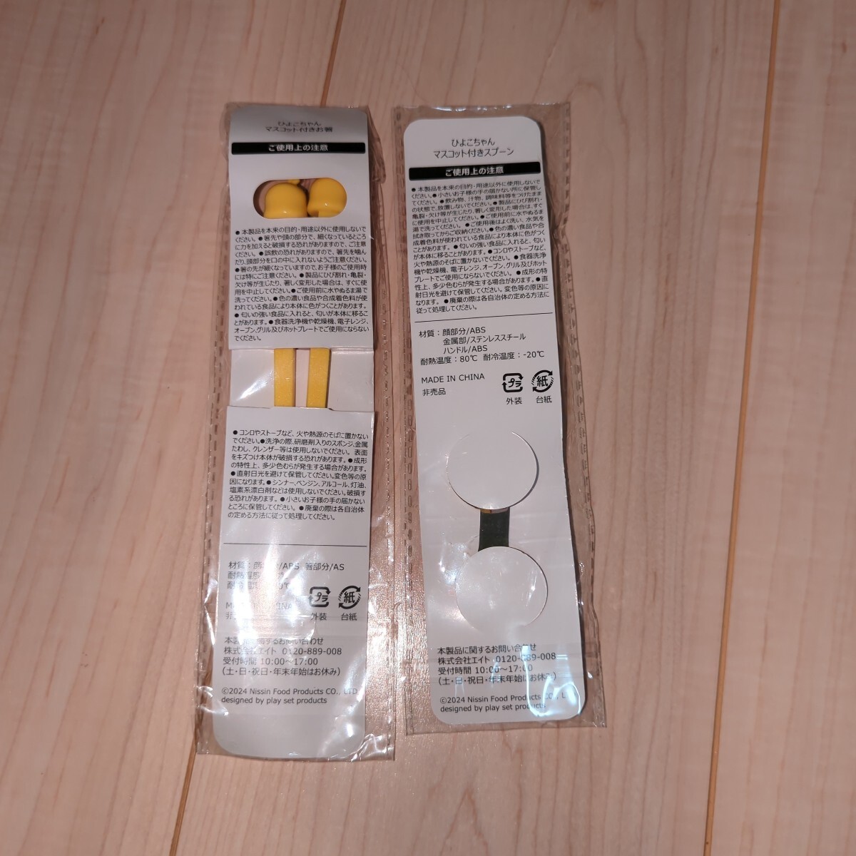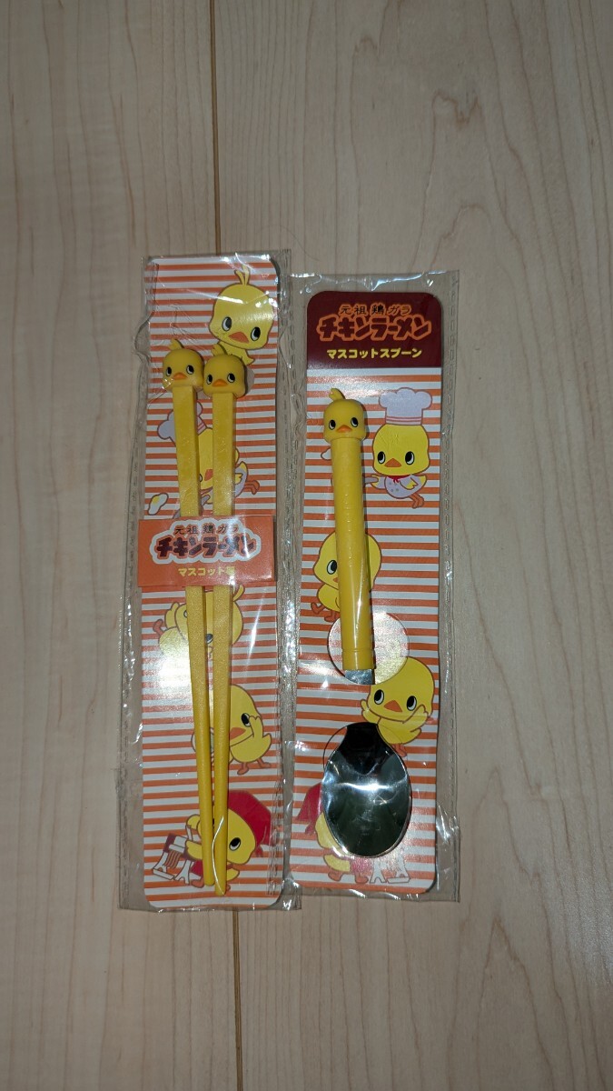 チキンラーメンのマスコットスプーンと箸です。自宅長期保管品であることをご了解の上ご購入下さい。