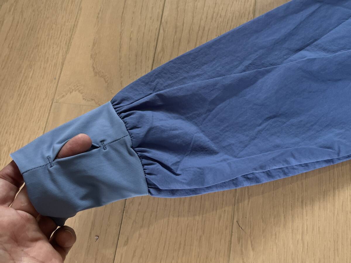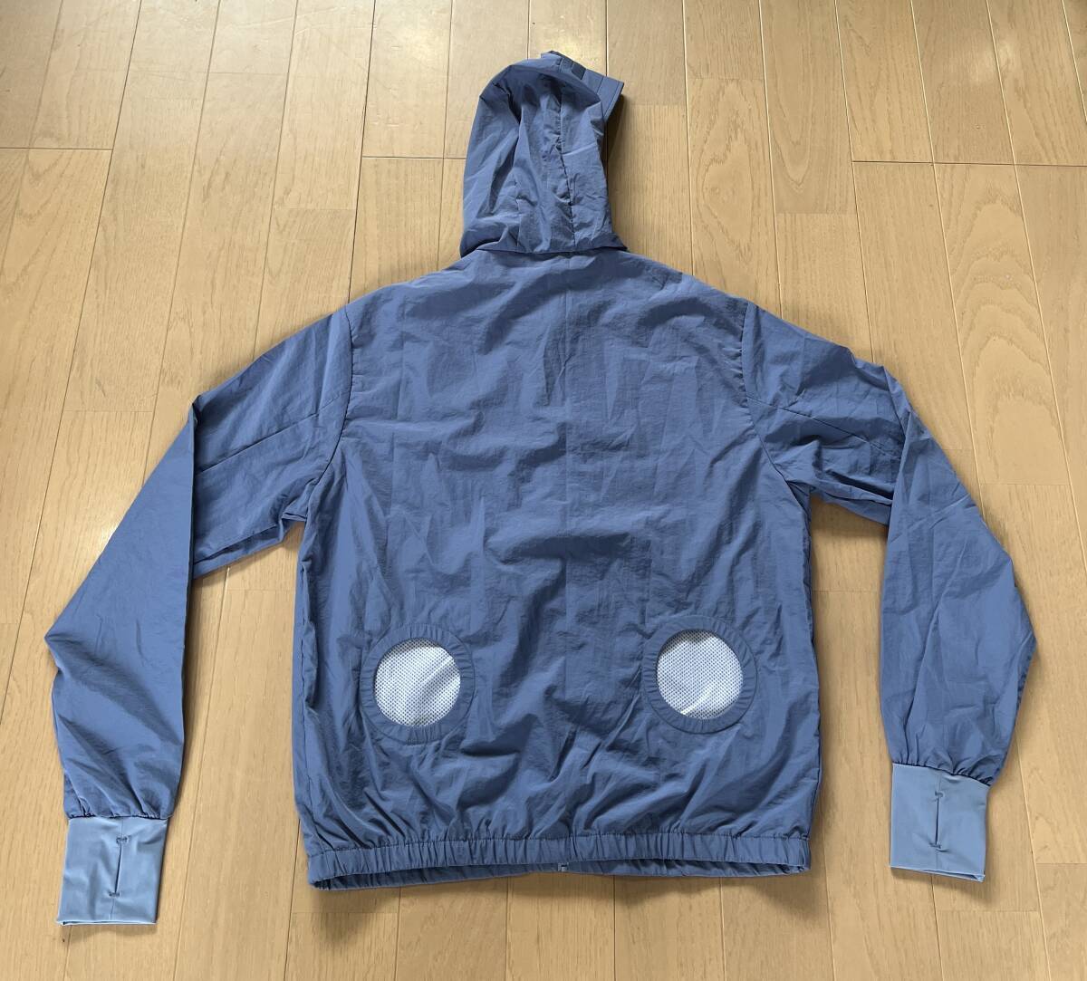 真夏の晴天時に一番効果のあるフード付きの長袖手のひらまで覆う作りの空調服です。