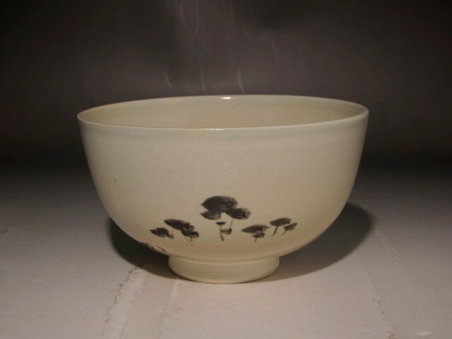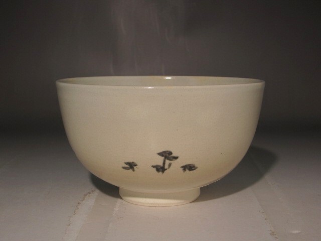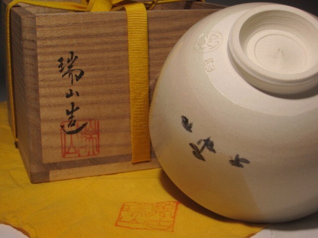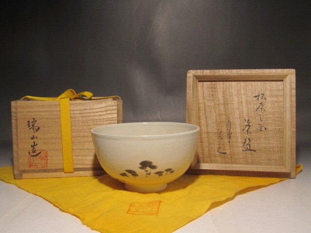 瑞山 松原絵茶碗です。 堀内流十二代兼中斎 宗完花押の逸品です。 味わい深い作品です。 高台脇に銘があります。