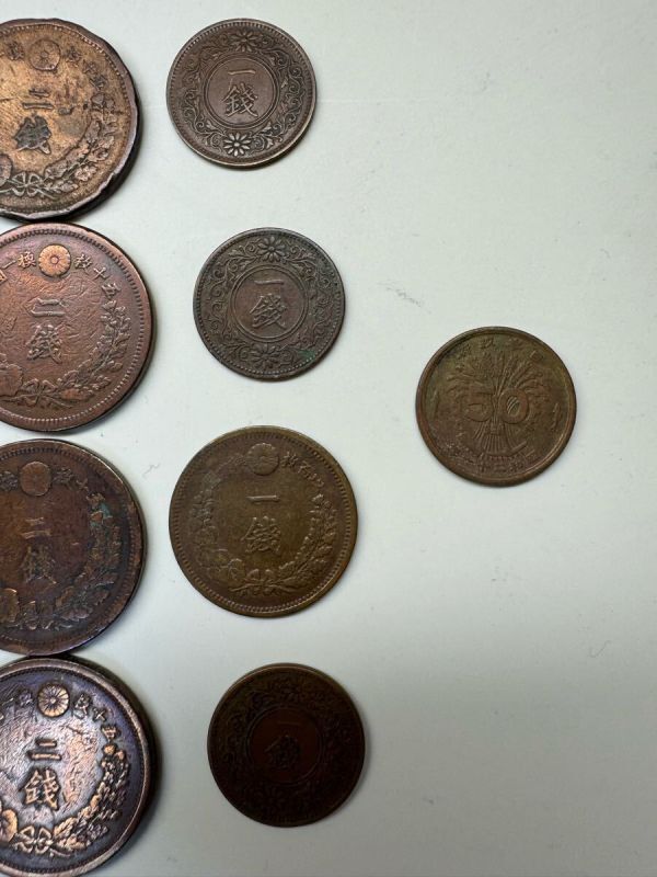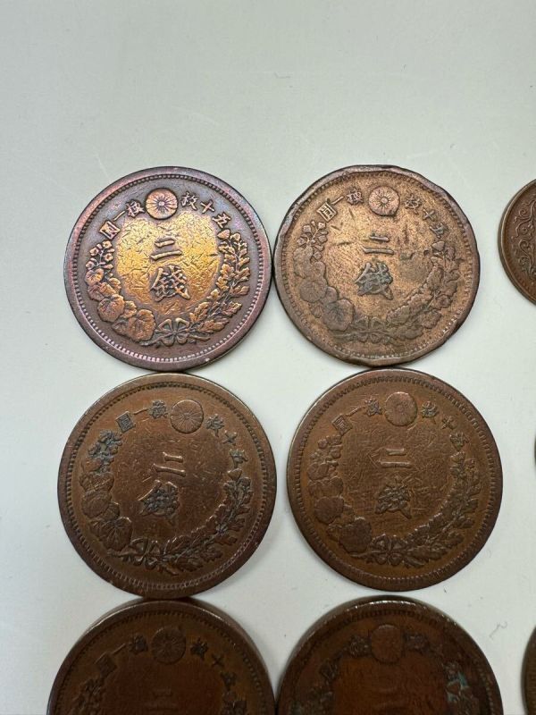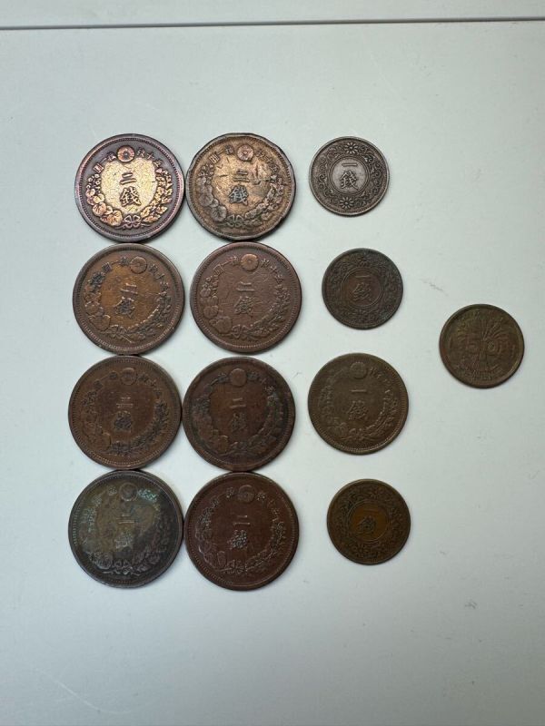 ・古銭14枚セット 明治 2銭、1銭 通貨 硬貨 小型 コイン コレクション まとめ売り
