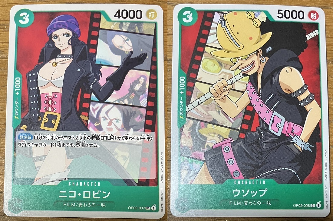 ONE PIECEの「ニコ・ロビン OP02-037 UC」&「ウソップ OP02-028 C」セットです。