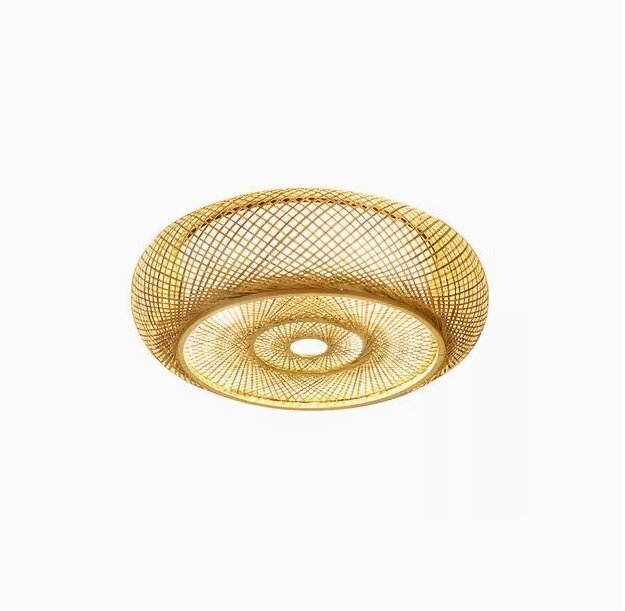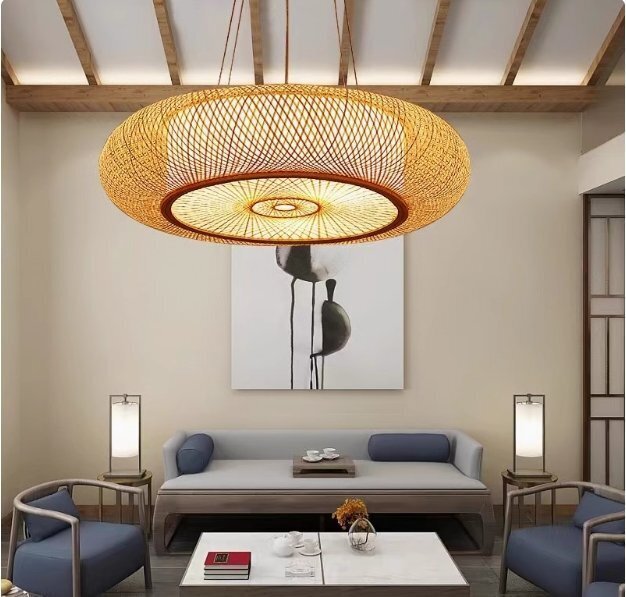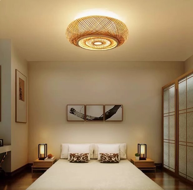 吊り下げ照明 LEDシーリングライト ベッドルームライト リビングルームライト 竹織りランプ 丸型 ペンダントライト 天井照明