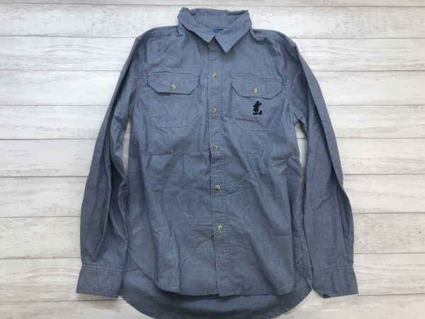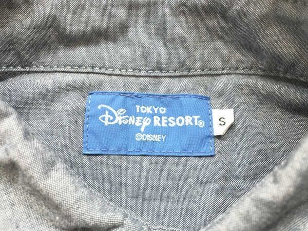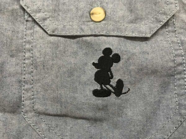 東京ディズニーリゾート Disney Resort アメカジ ミッキーマウス 逆向き シルエット刺繍 長袖 シャンブレー シャツ コットン混合 S 紺 です。