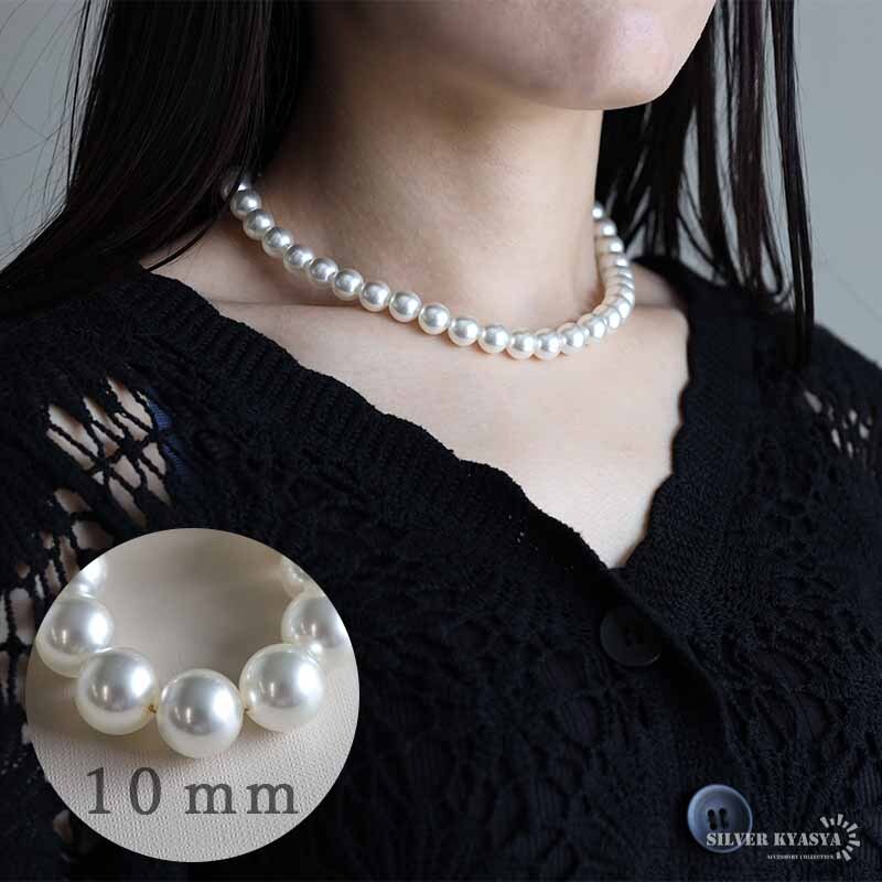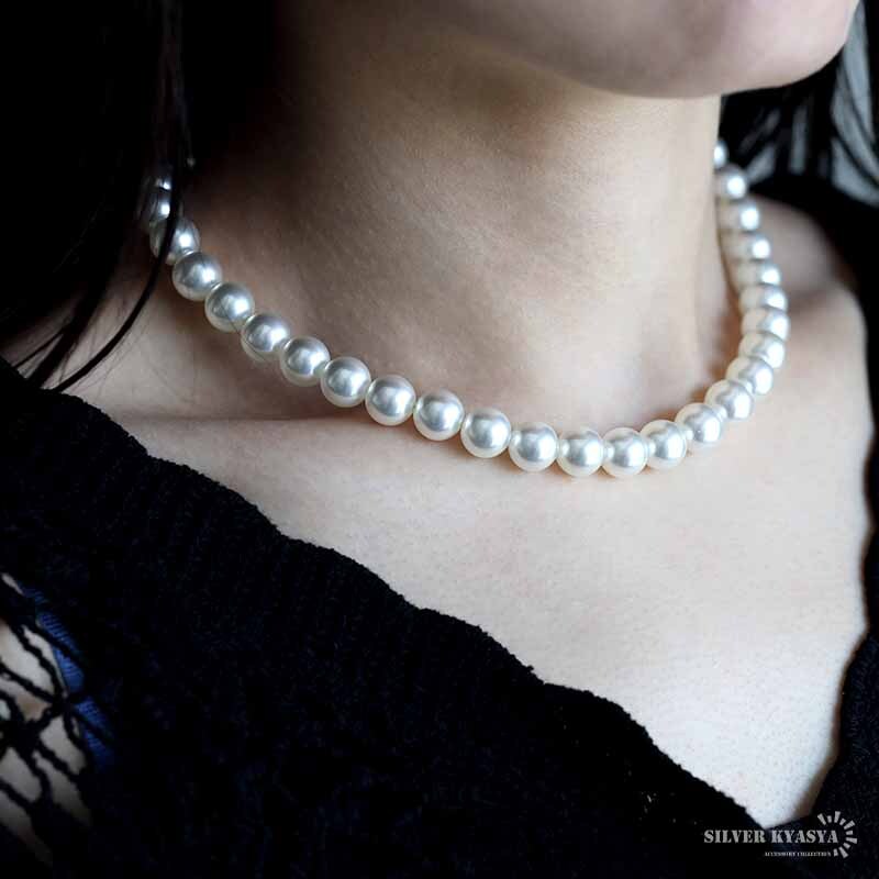 | 商品概要 | ■ITEM DETAIL 幅10mmのパールネックレス。ツヤ感のあるパールが胸元で優しく輝きます。パールは金属製ワイヤーでしっかり繋げてあるのでちぎれにくい仕上がりです。 ■金属アレルギー対応 留め具部分にはシルバー925素材を採用。全体的にはパールを基調としているため、金属アレルギーの出にくいアクセサリーです。 |