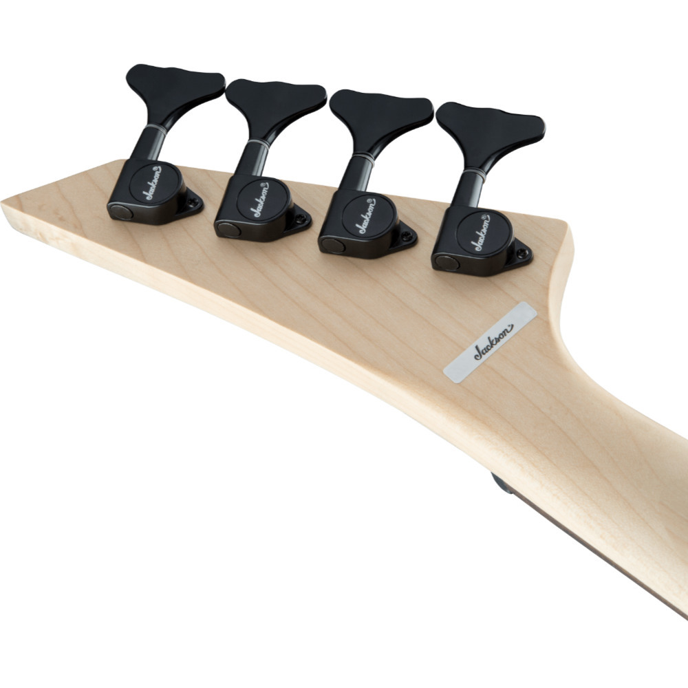 Jackson PスタイルネックピックアップとジャクソンJスタイルブリッジピックアップのPJピックアップ構成で、ボリュームノブ、トーンノブ、ブラックベースプレート付きハードテイルブリッジ、Jacksonブランドチューニングマシンを装備しています。