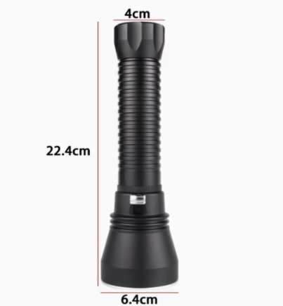特徴: エミッタタイプ: 1x オリジナル XHP70 LED チップ 白色光-XHP70 LED (第一世代) 黄色の XHP70.2 LED (第二世代) ライトカラー: ホワイト 6000 18K/黄色 3200 18K LED の寿命: 10.000 時間 輝度: 4000 ルーメン最大。 ケース素材: 6061 航空機グレードアルミ レンズ: 強化ガラスレンズ カップ素材: アルミ合金質感反射カップ 防水: IPX-8 、水の下 100 メートル (耐久性、潤滑ダブル O リングシール二回セキュリティに機能水 ) スイッチ: 磁気スライドスイッチ (無段階調光) 電源による: 2 × 26650 3.7 V 電池 寸法: 223 ミリメートル (長さ) × 63 ミリメートル (ヘッド) × 40 ミリメートル (テール) 正味重量: 410 グラム