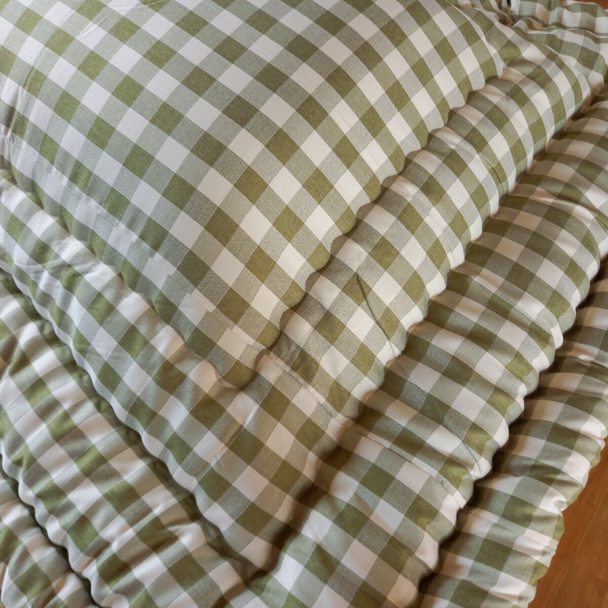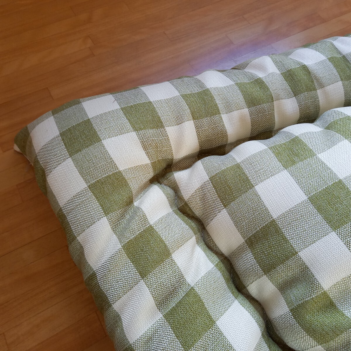 なかなか画像では伝わりにくいのですが、深みのあるグリーンチェックのざっくりとした生地で出来ばえは本物思考の商品です。