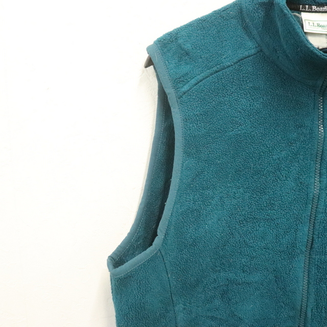 C801 90sビンテージ エルエルビーン フリースベスト■1990年代製 Lサイズくらい レディース ブルー 無地 刺繍 アメカジ 古着 古着卸