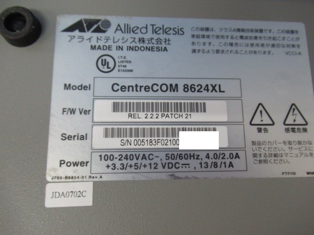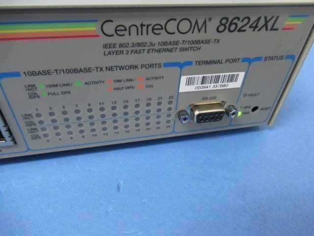 ◇ CentreCOM 8624XL ×1 アライドテレシス Allide Telesis レイヤー3 ギガビット イーサネット・スイッチ 通電確認のみしております。 電源をつけるとFAN音がします。 | ||