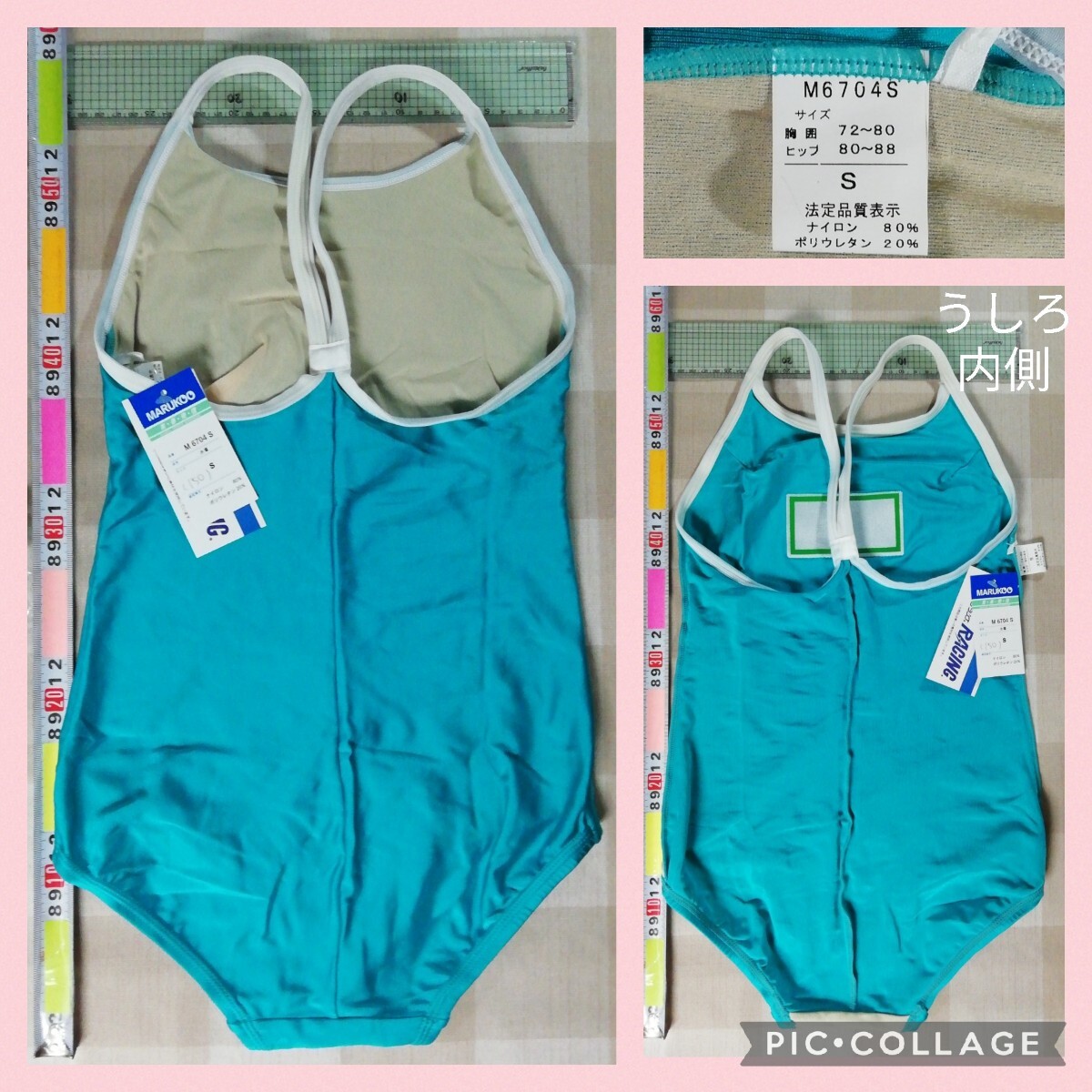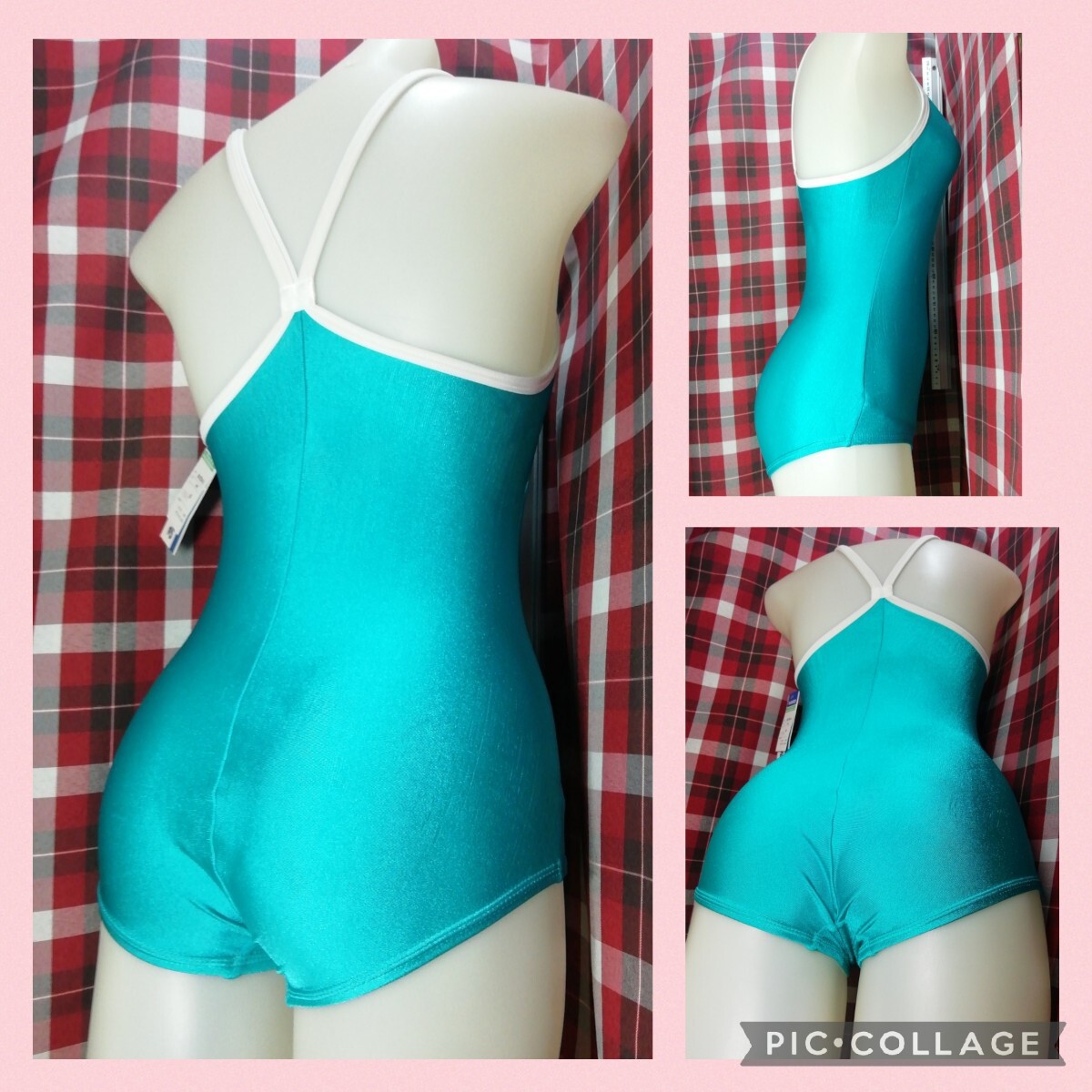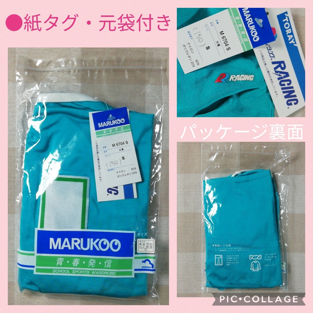 【● 紙タグ付き● ▼生地が薄い部分あり▼ MARUKOO ナイロン・ポリウレ つるすべ エメラルドグリーン 競泳水着[Sサイズ]9/28(日) 終了】