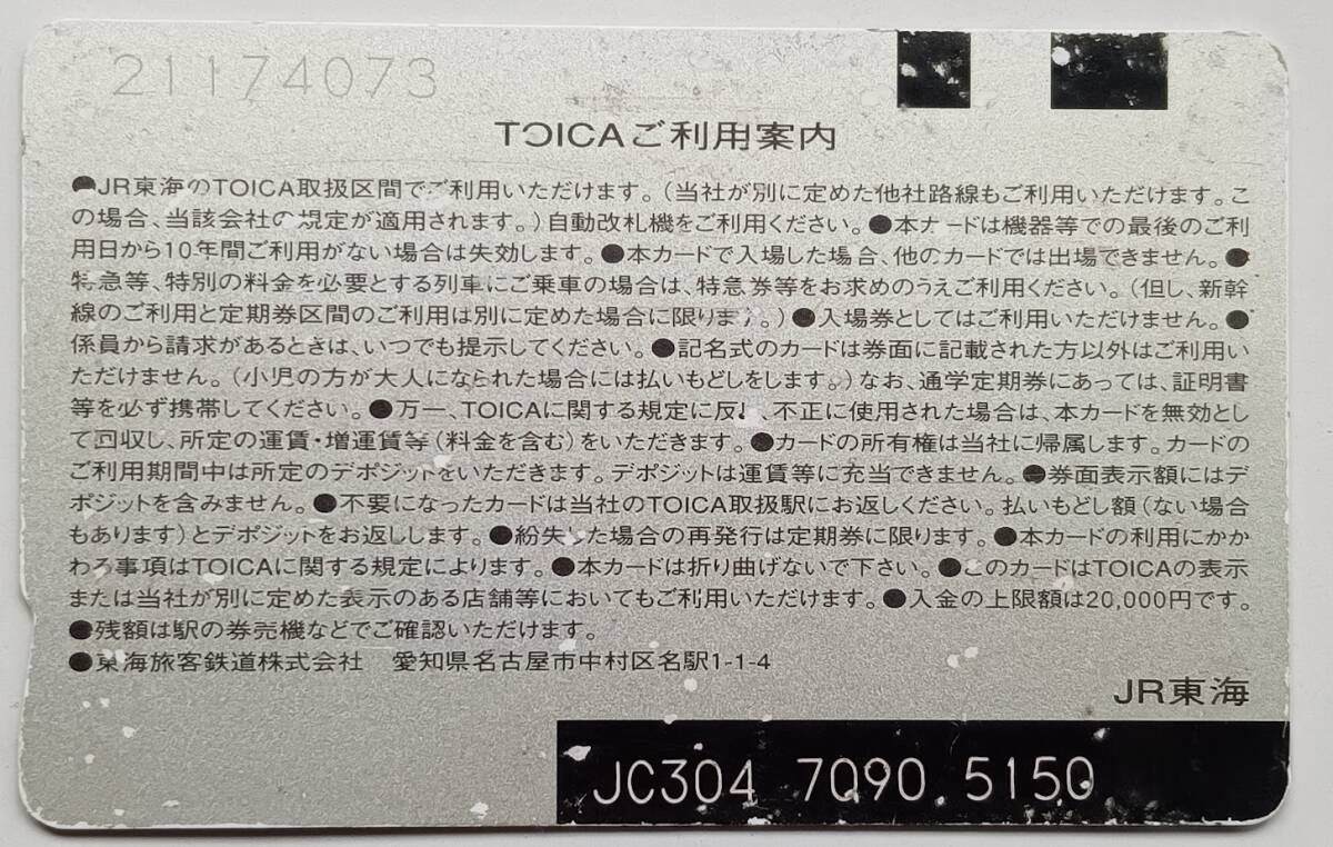 JR東海のICカード toICa。残高0円。落札者様でチャージ(入金)のうえ 使用可能。それなりの細かい使用傷があります。 全国の交通系ICカードの相互利用カードです。suica・pasmoエリアでも使えます。 |