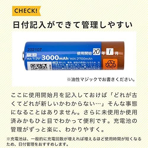 単3形ニッケル水素充電池 1.2V 3000mAh 4本セット(専用ケース付き)