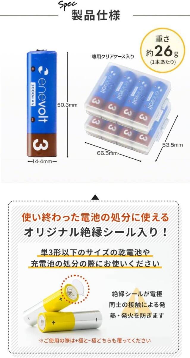 enevolt(エネボルト) 単3形 ニッケル水素充電池 4本 + 単4形 ニッケル水素充電池 4本 計8本