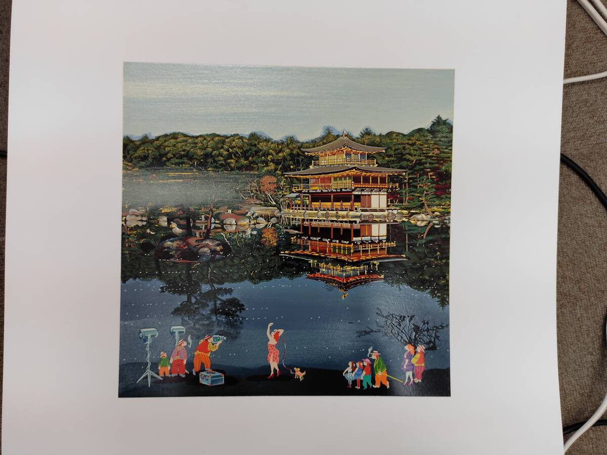 商品詳細 | 金閣寺が描かれた絵です。 技法はシルクスクリーンだと思いますが 作者 エディションは記入ありません。 ペーパーサイズ縦51㎝ 横51㎝ イメージサイズ縦30cm 横30cm