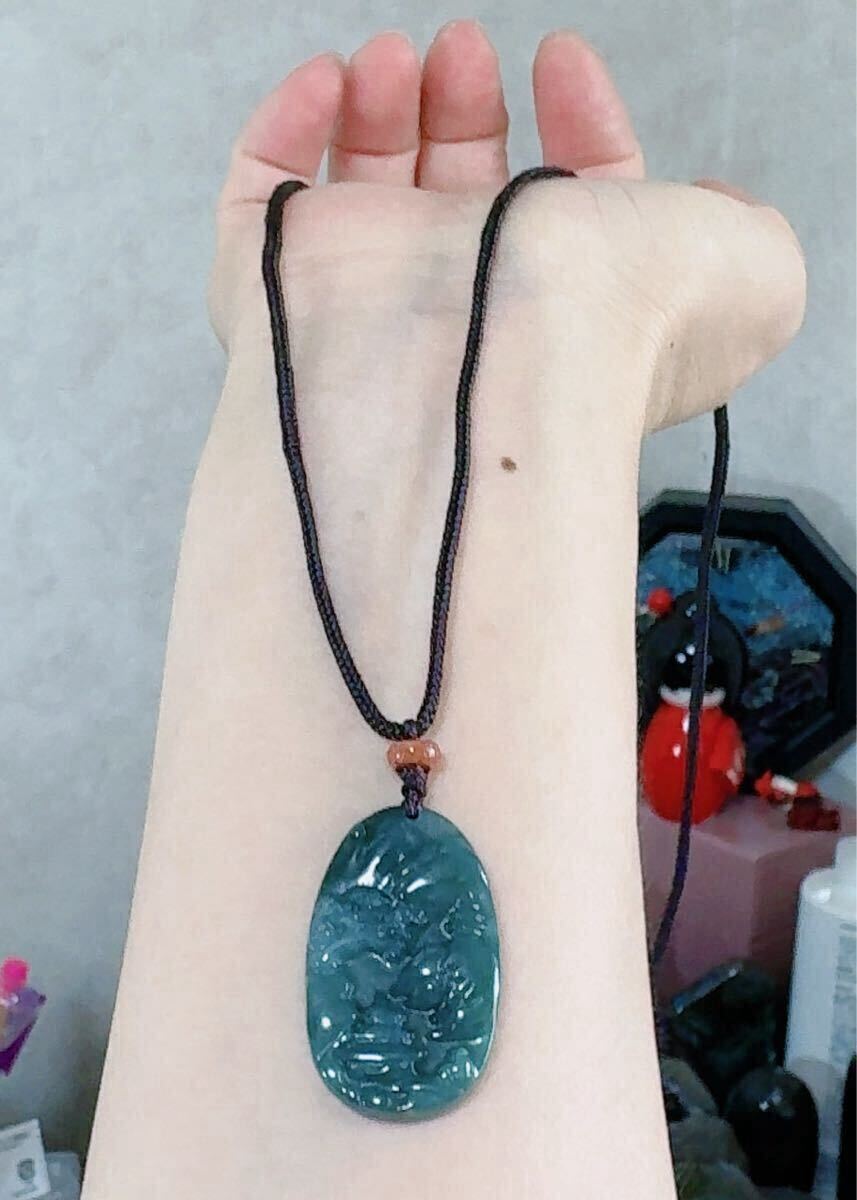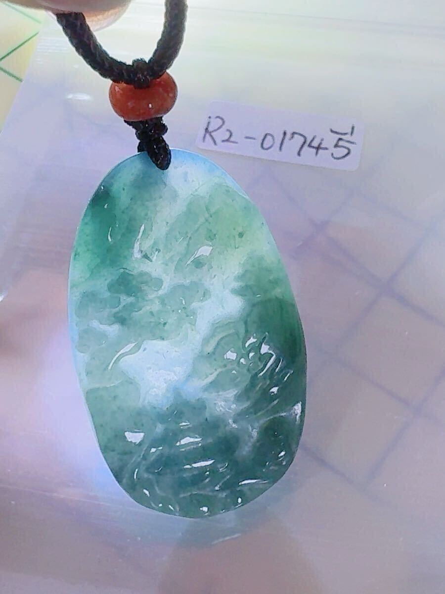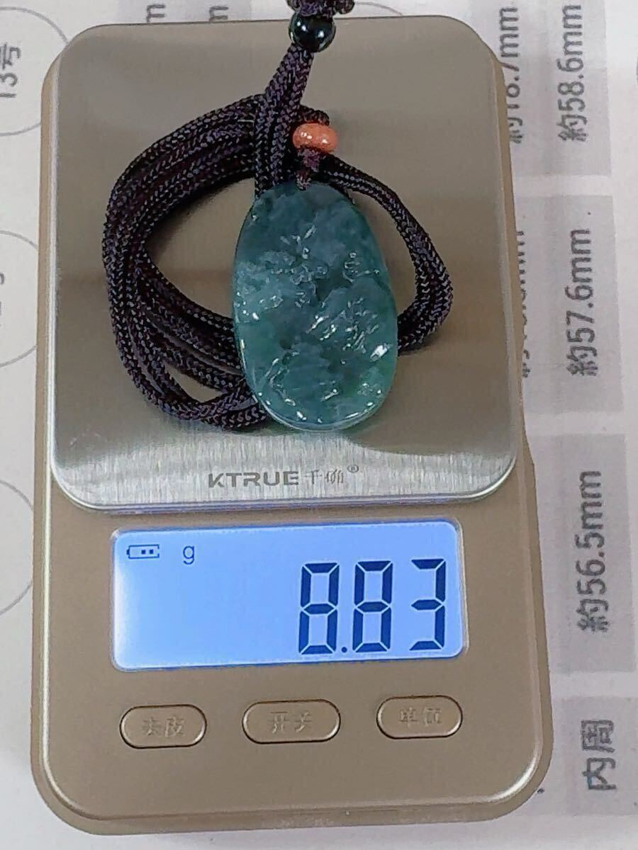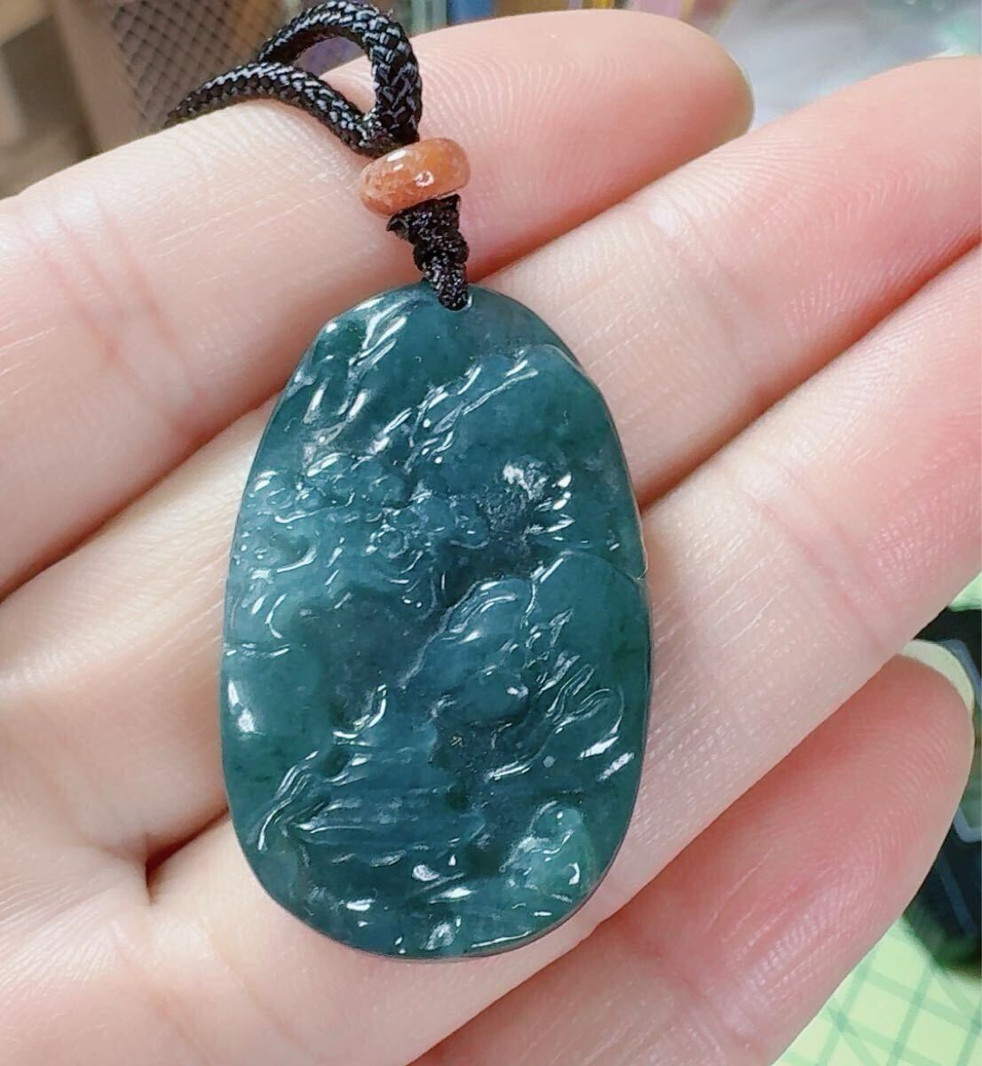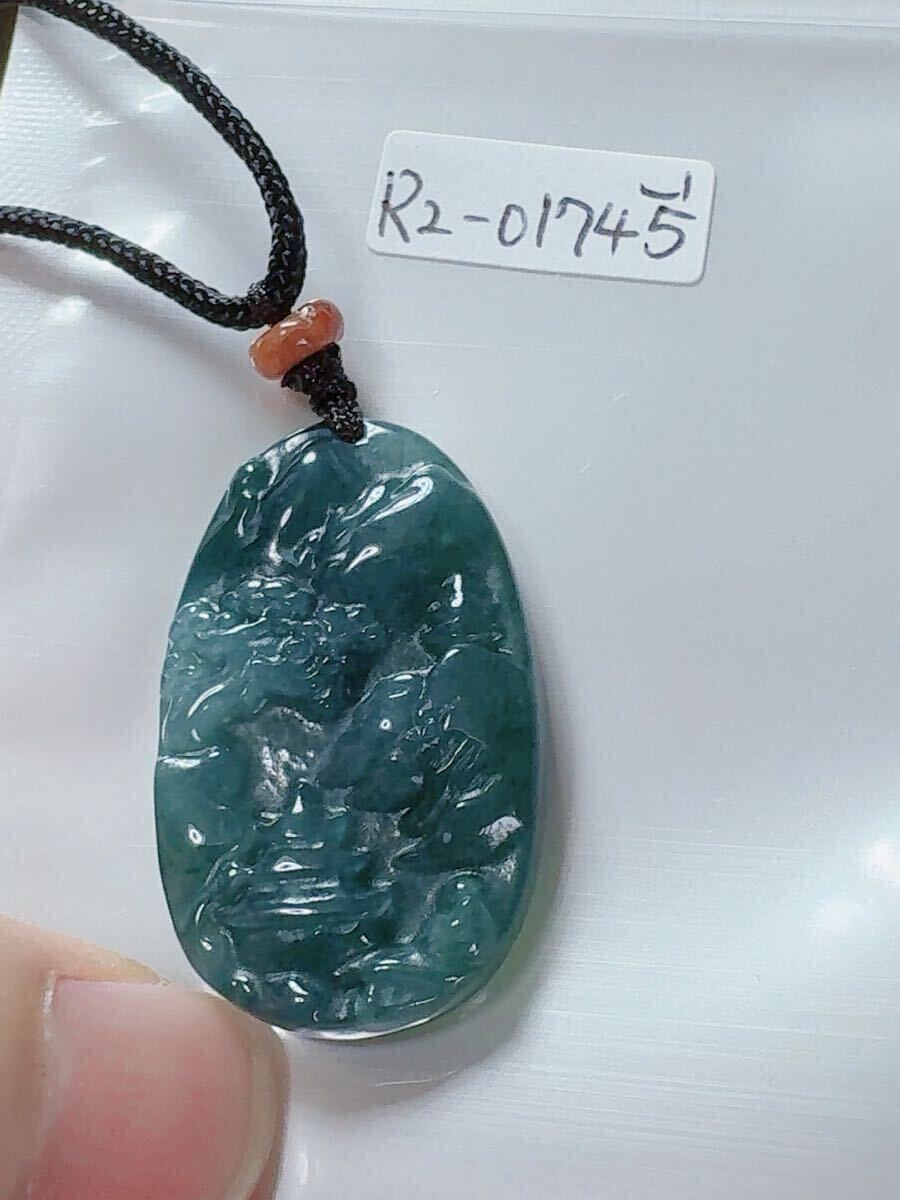 R2-01745-1 天然本翡翠《本物保証》「山水」ペンダント 一品一図 高品質 一点物 魔除け 昇進 成功 風水 金運 財運 幸運 幸福 縁起物 パワーストーン