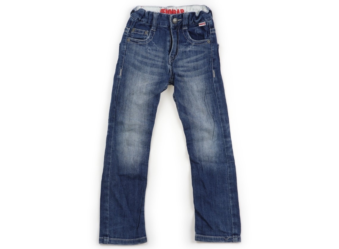 ウエストはサイズ調整ゴムが付いていて、前ファスナー開き。全体に色褪せあり。特に膝とお尻は汚れもあり、目立ちます。