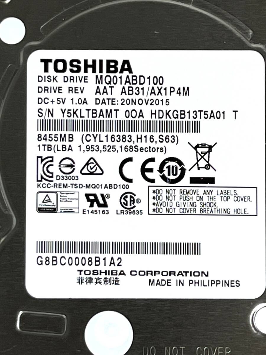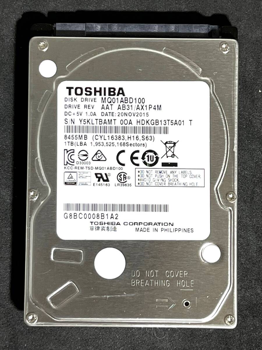 ★ 1TB ★ MQ01ABD100 / TOSHIBA 稼働少 【使用時間:2617h】2015年製 正常品 2.5インチ 内蔵 HDD 9.5mm SATA 1000GB [管理■59BA]