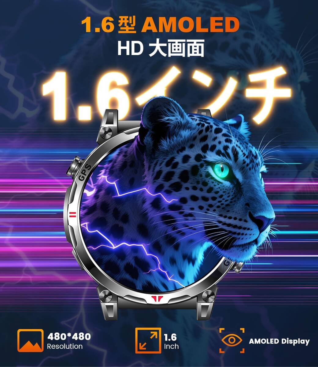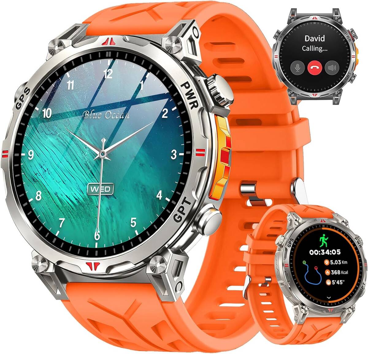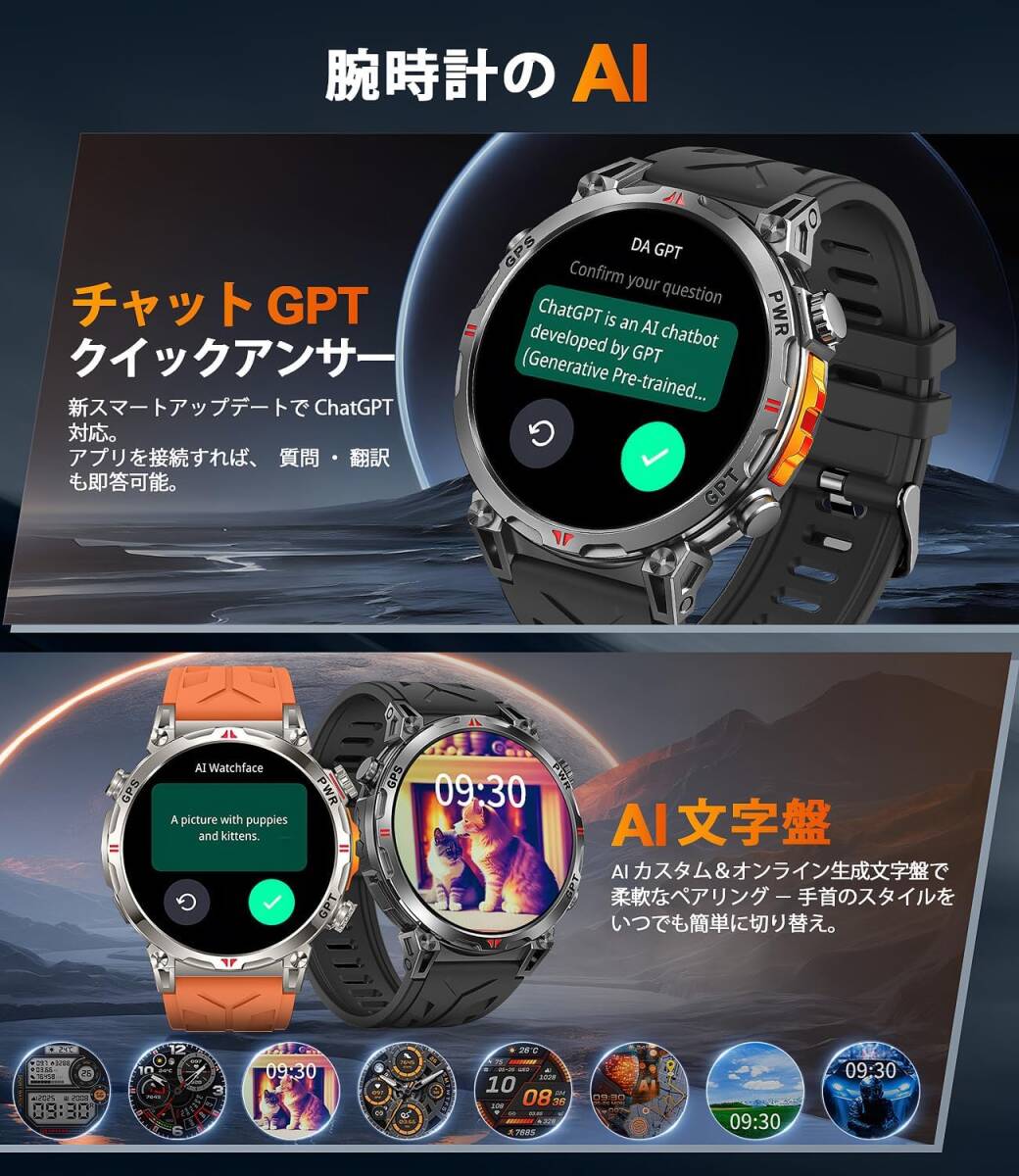 オレンジ色 スマートウォッチ 【2025 ChatGPT搭載 内蔵GPS AI文字盤】 1.6 インチAMOLED大画面 軍用規格 耐衝撃 GPS運動模式記録