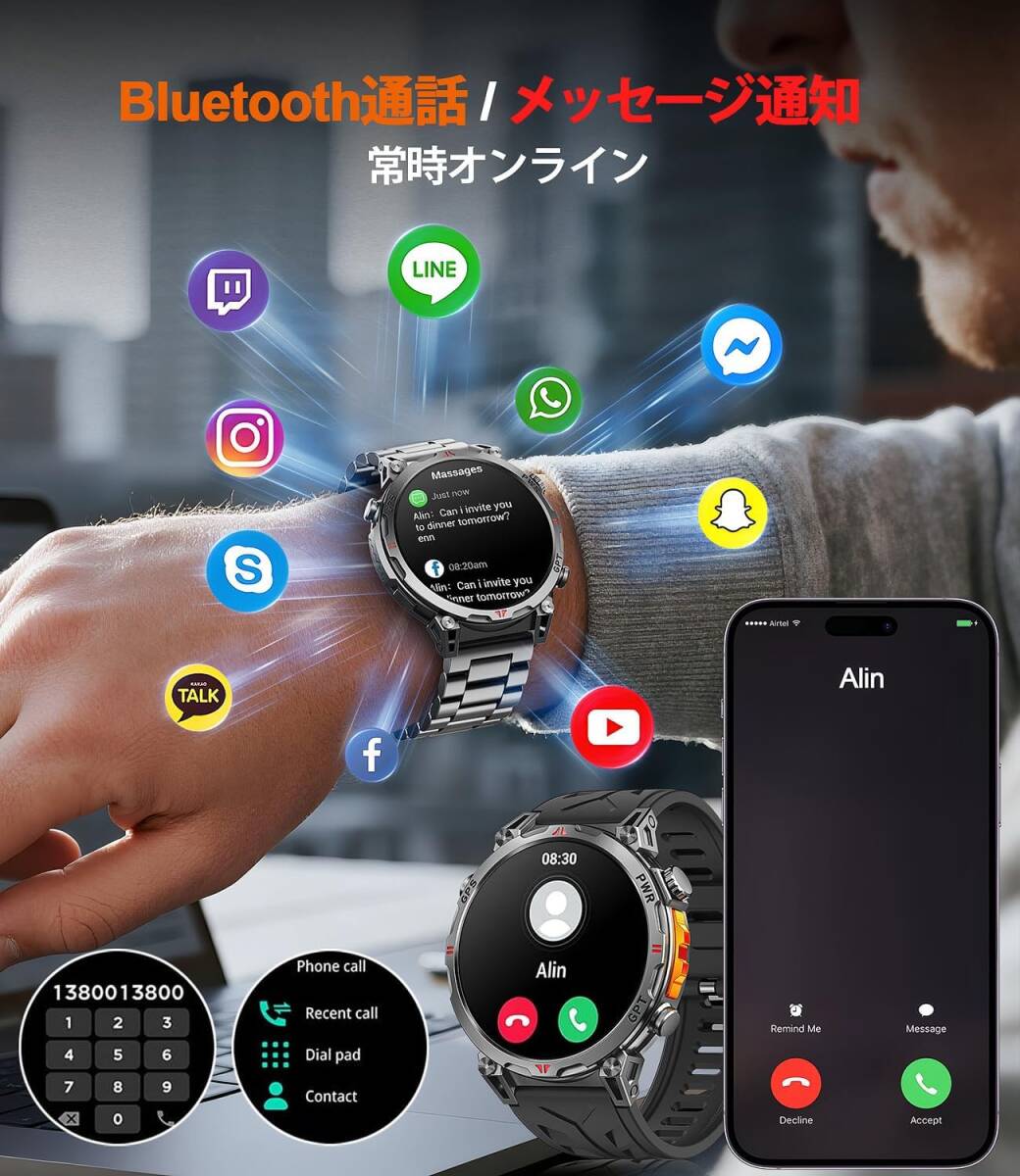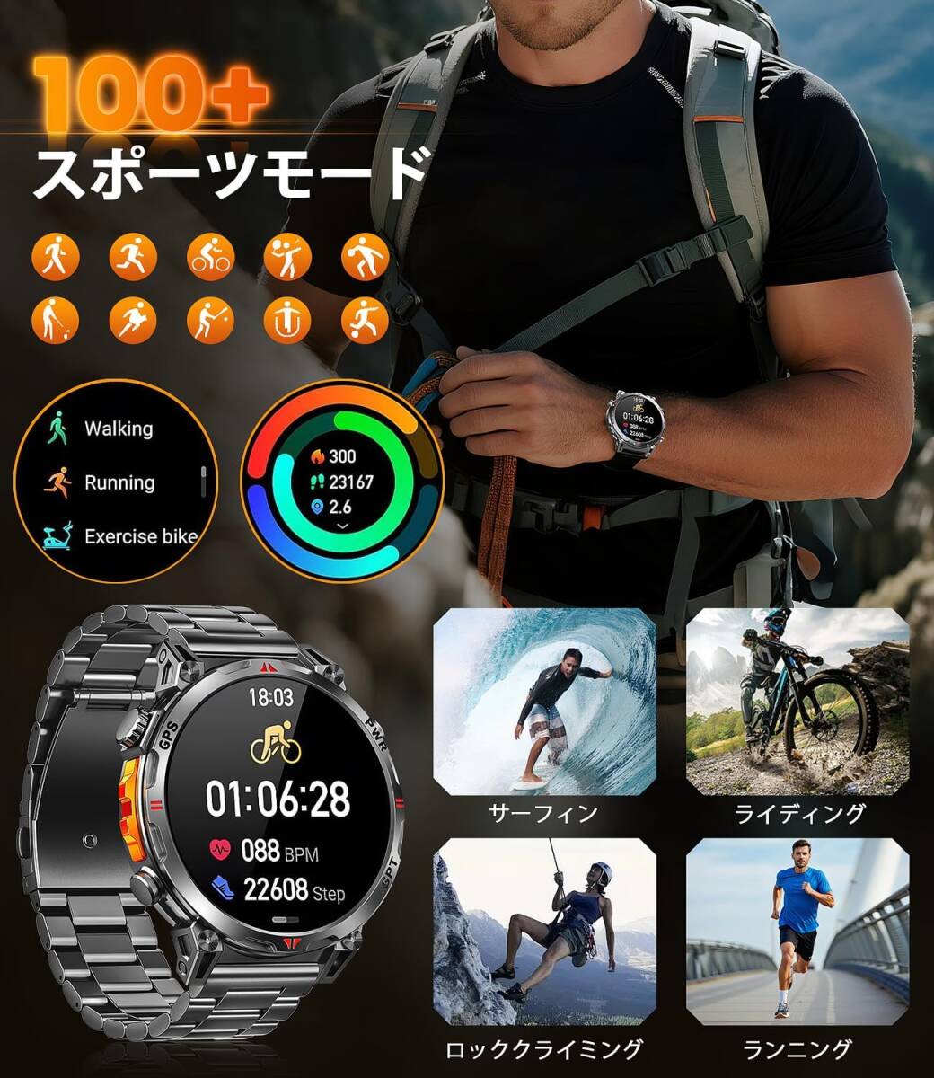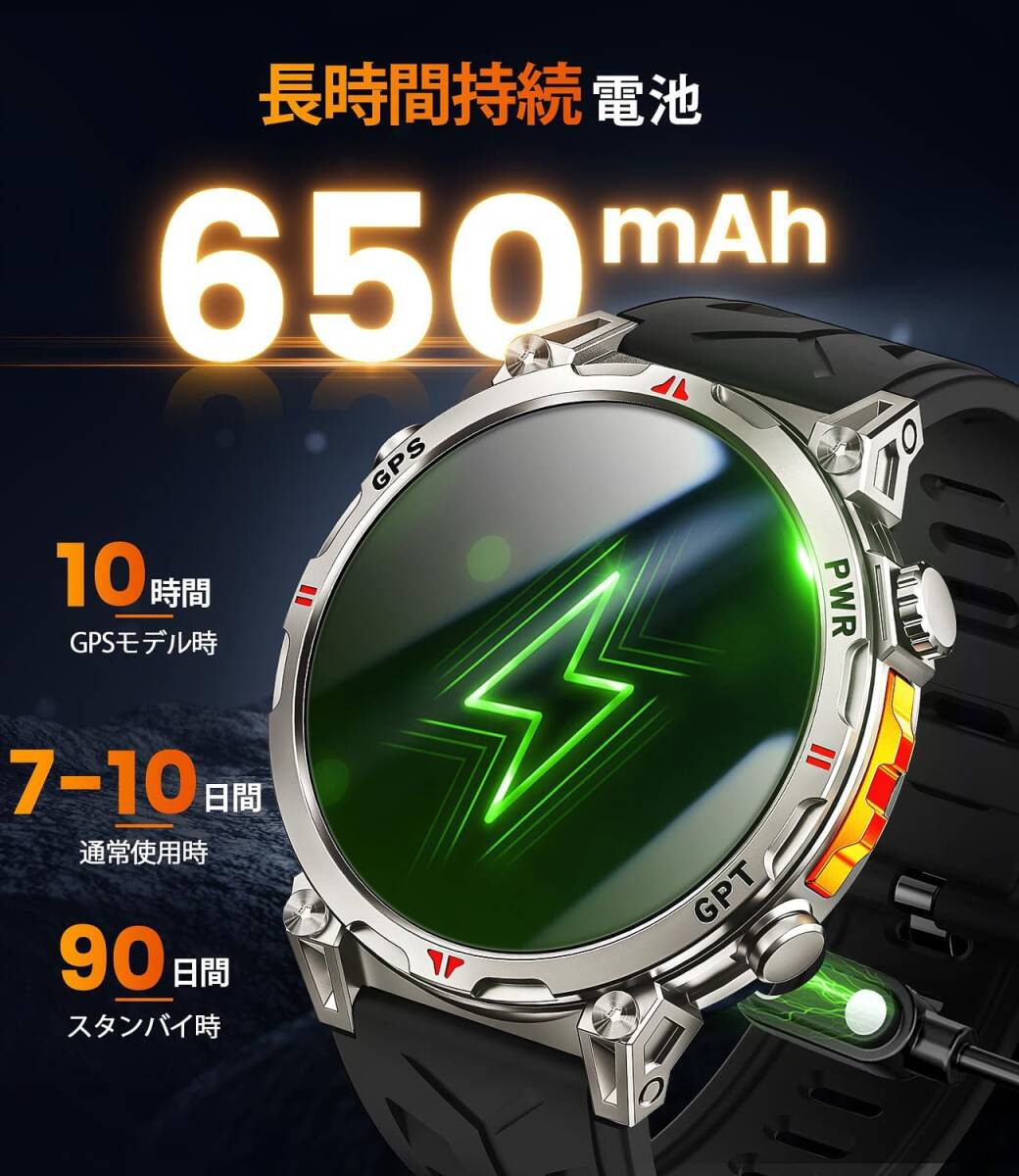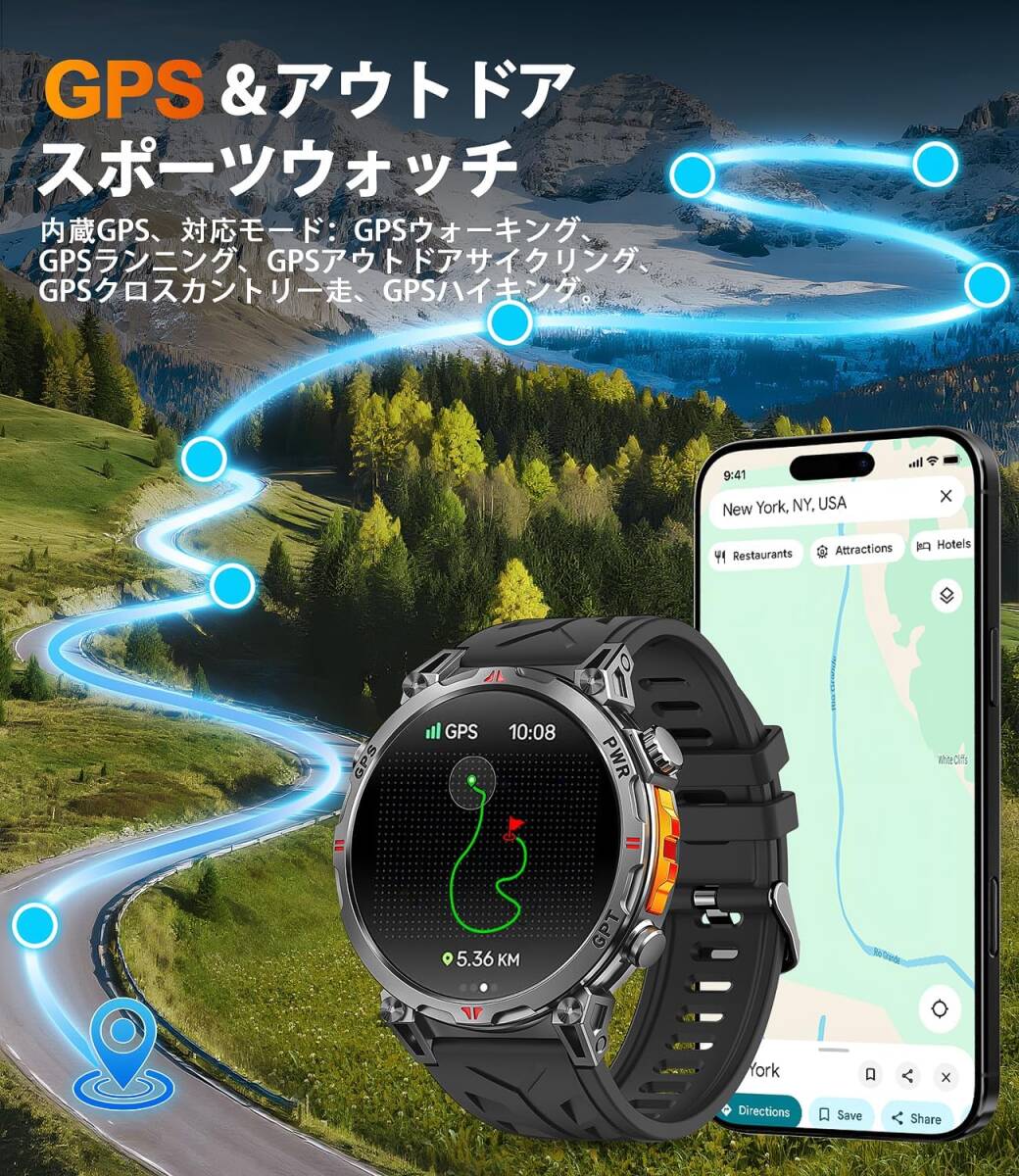 オレンジ色 スマートウォッチ 【2025 ChatGPT搭載 内蔵GPS AI文字盤】 1.6 インチAMOLED大画面 軍用規格 耐衝撃 GPS運動模式記録