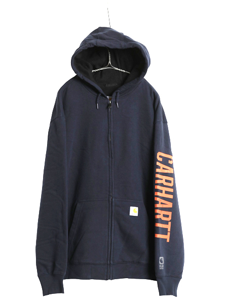 商品名 | US企画 カーハート 裏 フリース フルジップ スウェット パーカー メンズ XL 袖 プリント ジャケット トレーナー 撥水加工 大きいサイズ 紺 |
