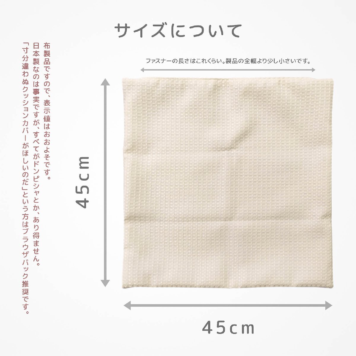 オーソドックスな45cm角の規格サイズとなっておりますので、他社製ヌードクッションとの組み合わせが容易です。