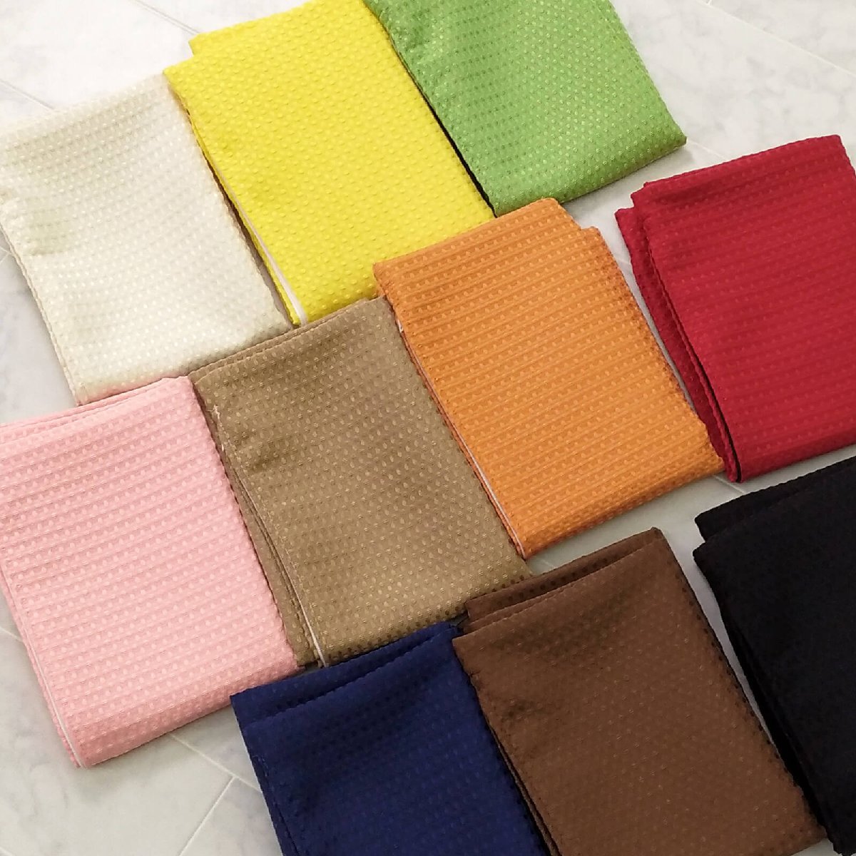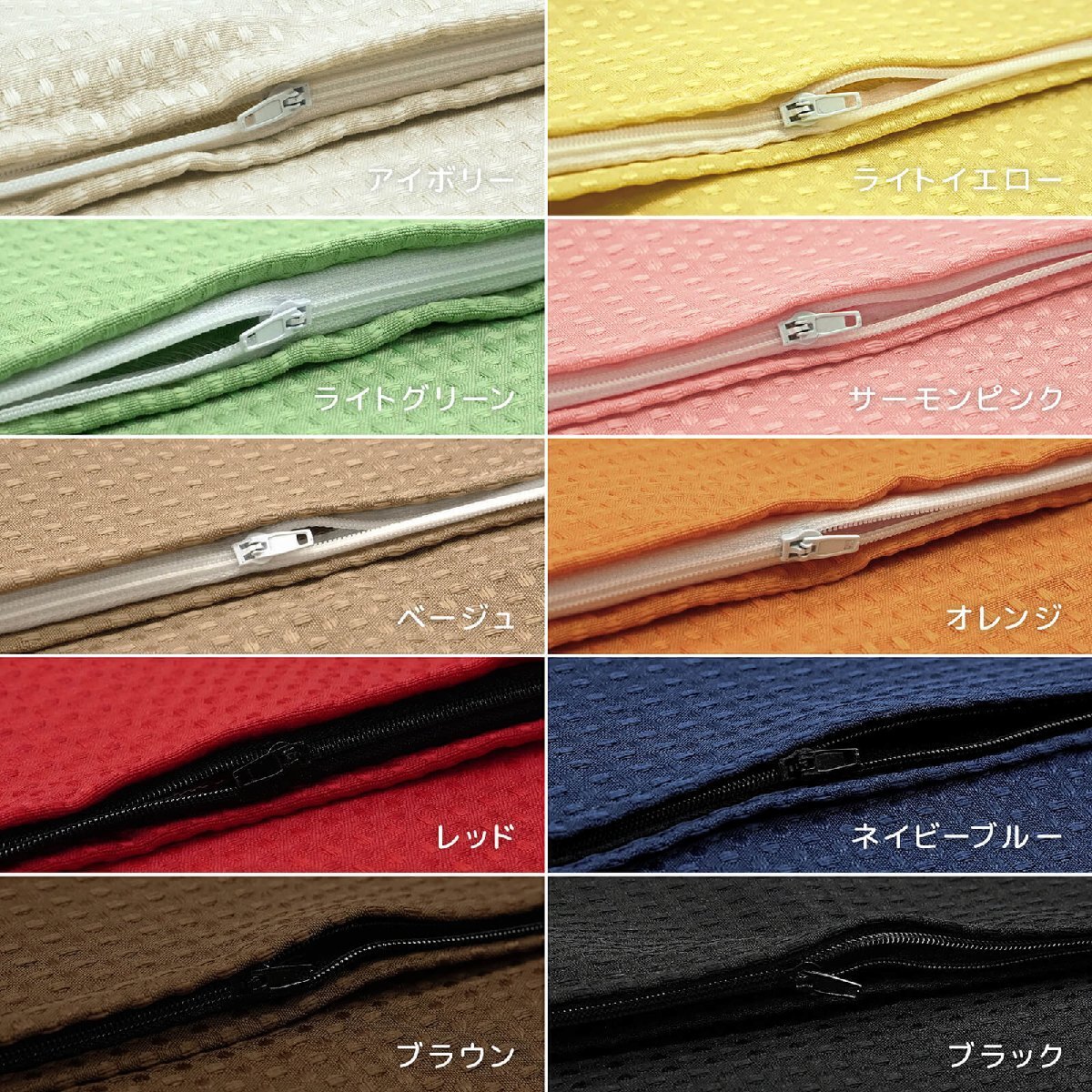 カラーラインナップ:アイボリー、ライトイエロー、ライトグリーン、サーモンピンク、ベージュ、オレンジ、レッド、ネイビーブルー、ブラウン、ブラック