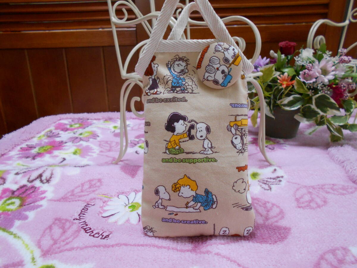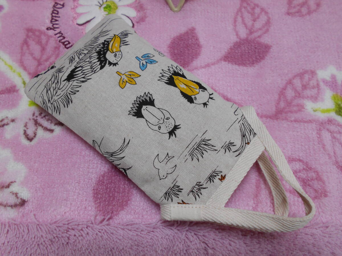 スマホ入れ・くるみボタン付き ハンドメイド