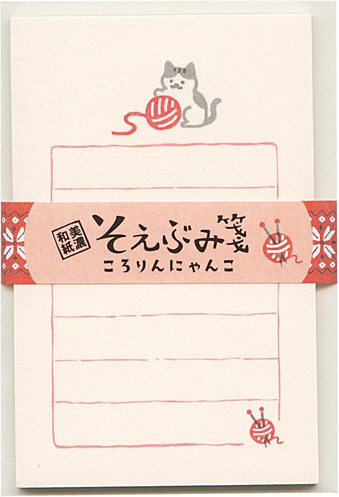 @【即決】▽そえぶみ箋▽ 古川紙工 レターセット ころりんにゃんこ 美濃和紙 便箋 封筒 ねこ ネコ かわいい レター メッセージ // LS576
