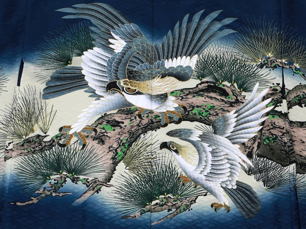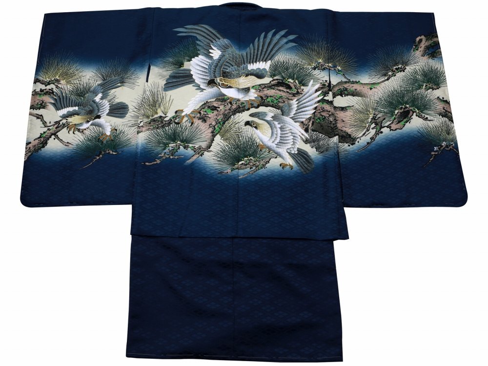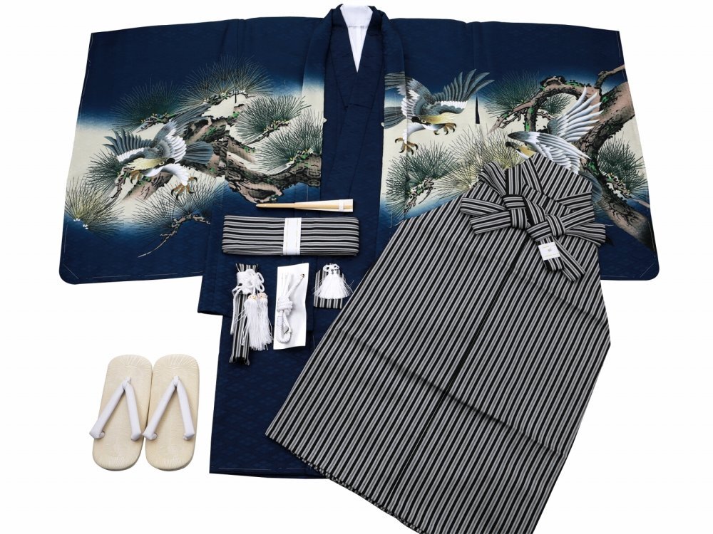 ■七五三 男の子用■男児 アンサンブル 着物 &袴 トータルセット 紺地 鷹 着丈90cm 5h-148 【お得で豪華なセット!】