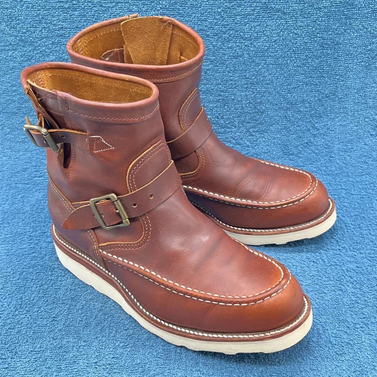 | 大人気!!大人気!!Chippewaのショートエンジニアブーツが入荷致しました。エンジニアブーツは過酷な環境下にも耐える頑強さが特徴のデザインとなっております。装飾が少なくスッキリとまとまったデザインは、男らしいコーデをする際に重宝します。頑丈さとファッション性を兼ね備えているため、バイクシーンではもちろんアメカジスタイルなど様々なシーンで大活躍する商品です。是非この機会に! |