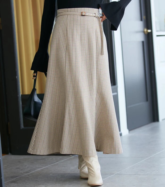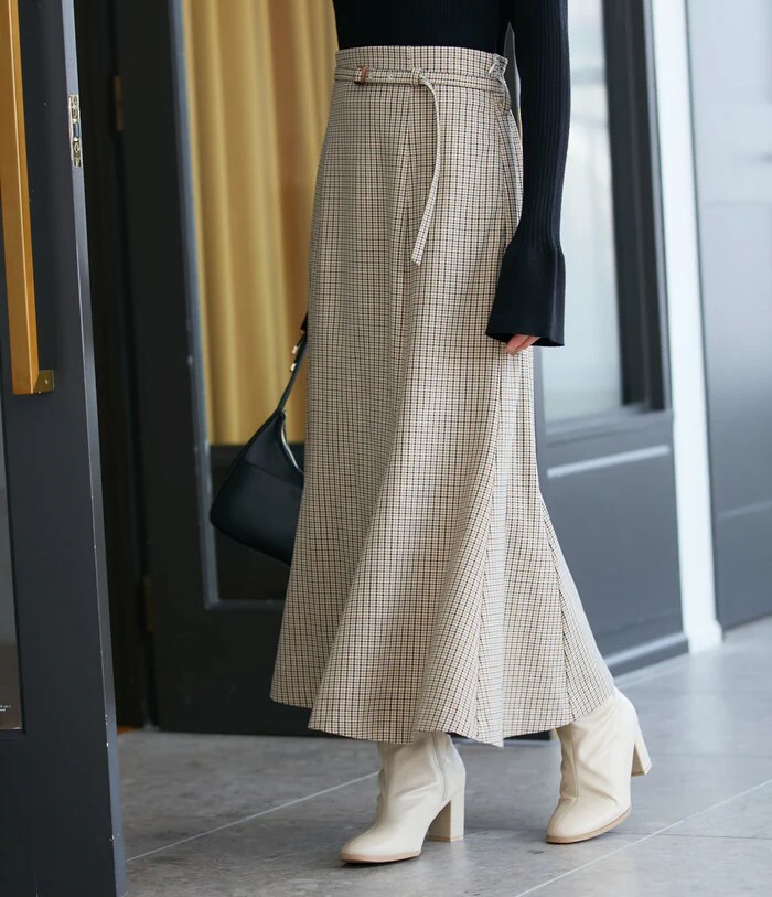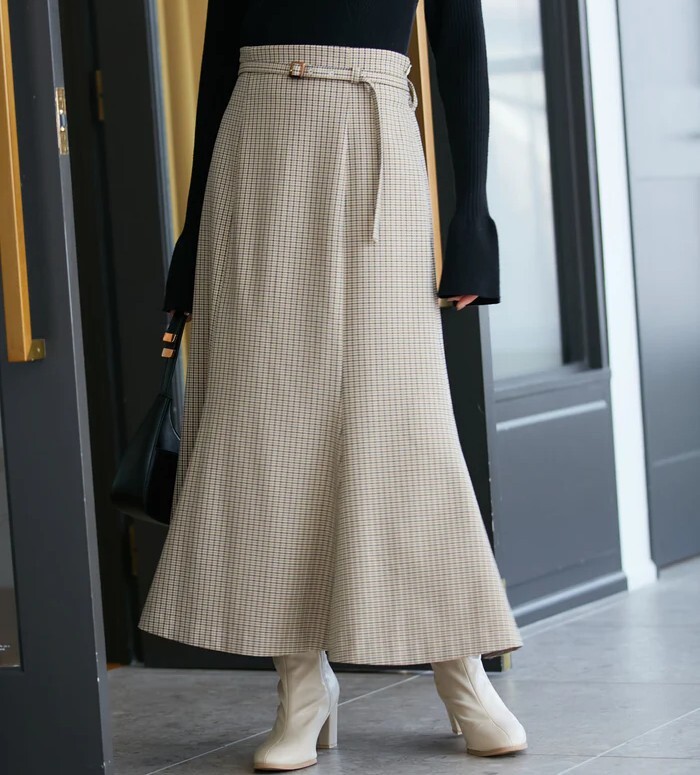 ・程よいきれい目の素材感とシンプルな切り替えのシルエットが万能なスカートです。